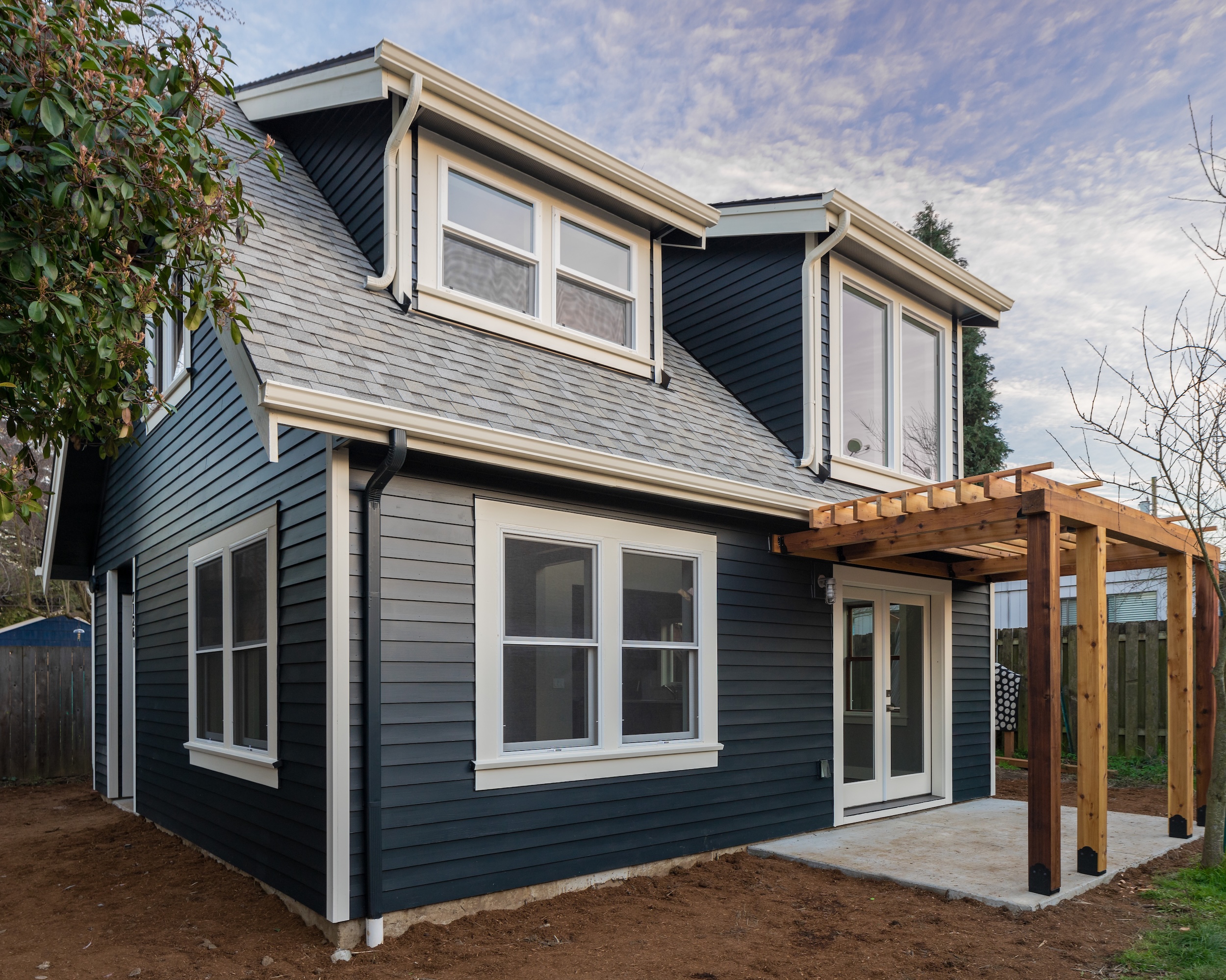 This detached 2-level ADU offers ample space with 800 square feet on a 24×24 footprint. To enhance cost-efficiency, the client opted for a finished subfloor on the second story and stairs, resulting in a truly distinctive appearance.