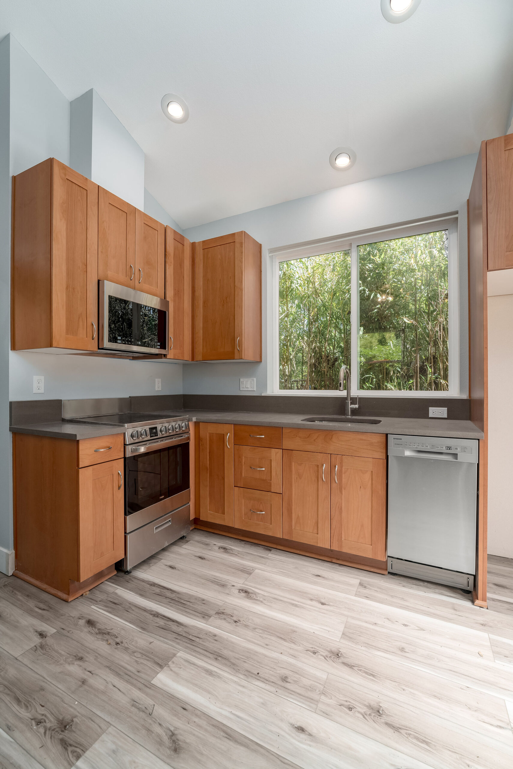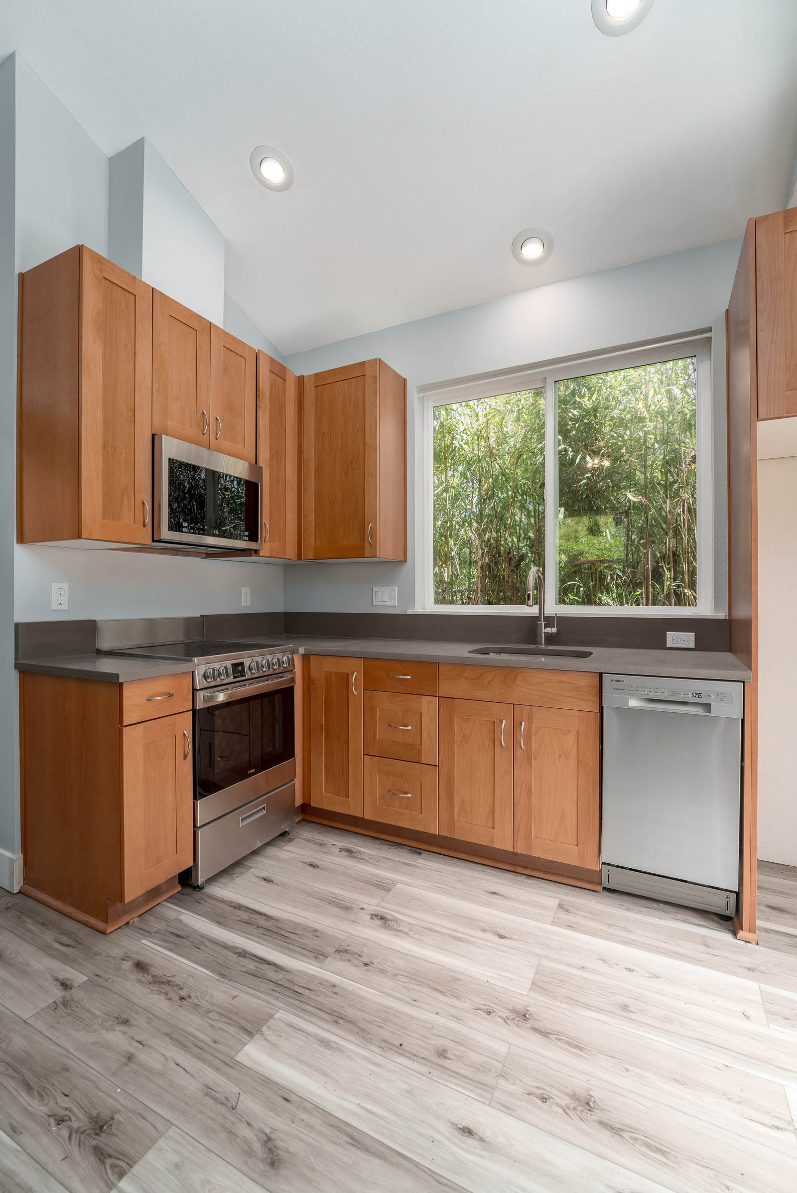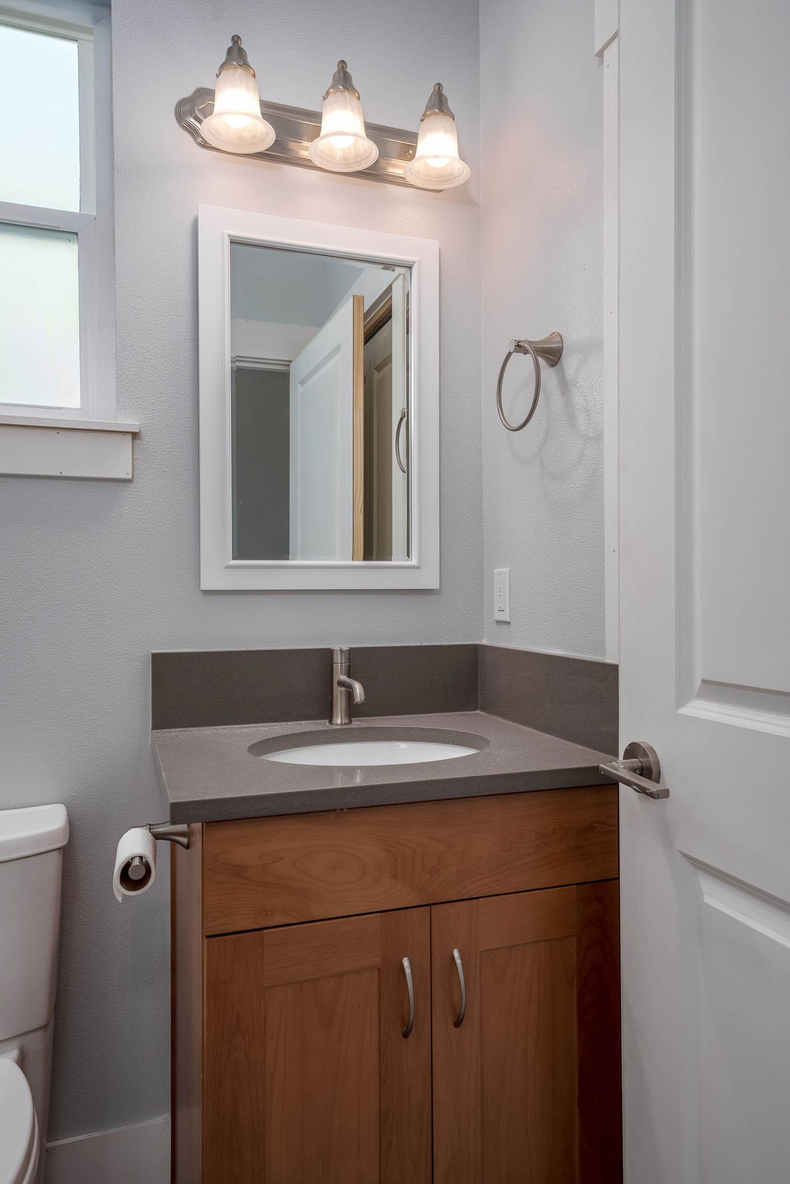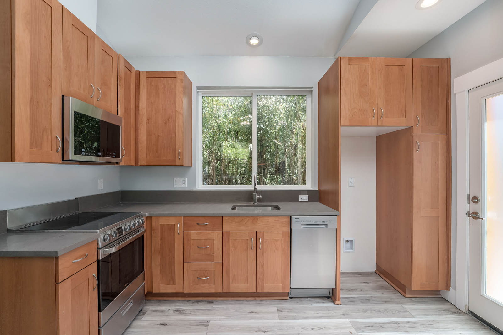 This ADU showcases Shelter Solutions’ expertise in efficiently utilizing very small spaces. You can see how tightly built the ADU is to the property line and the existing house. This 410 sq ft gem was built for our client to “age in place” on her daughter’s property, allowing her to stay close to her grandkids and family while enjoying her own private retreat at the end of the day.