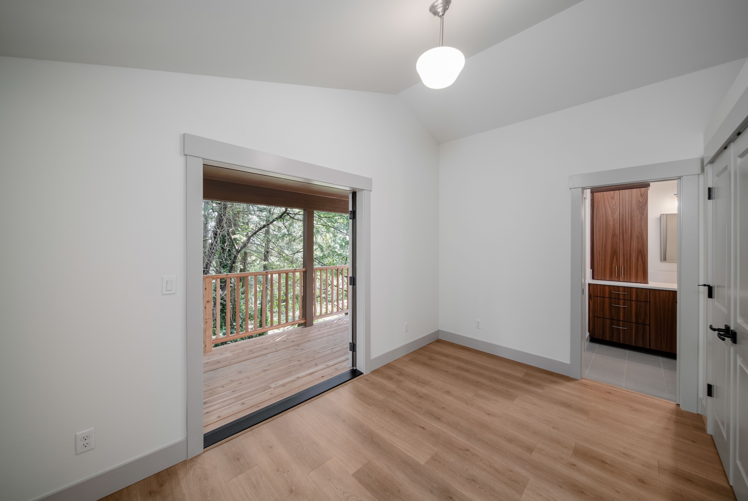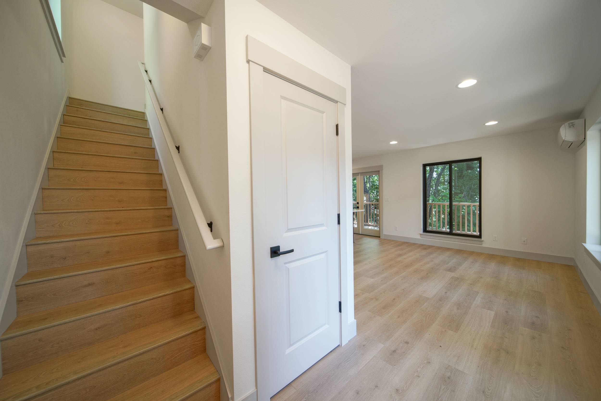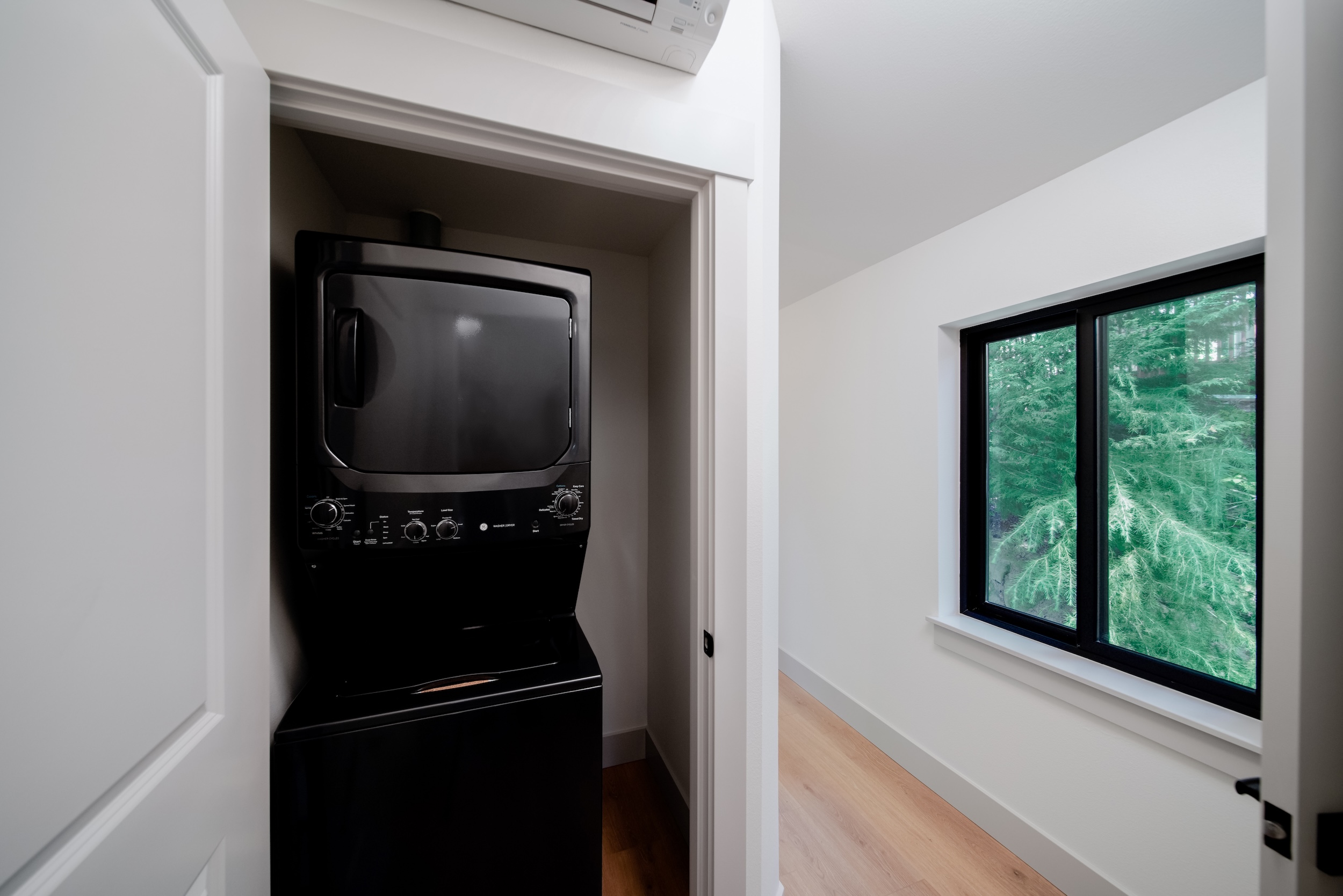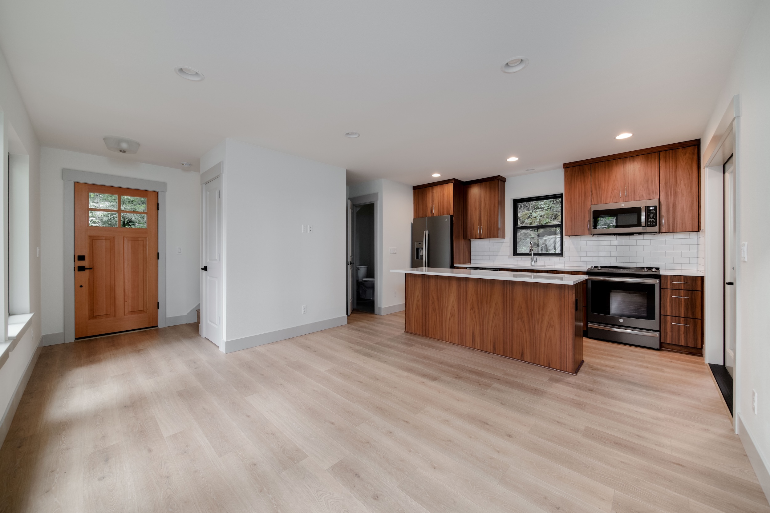 Offering 800 livable square feet and two parking spaces, this ADU embraces a forested view outside and a bright interior design.