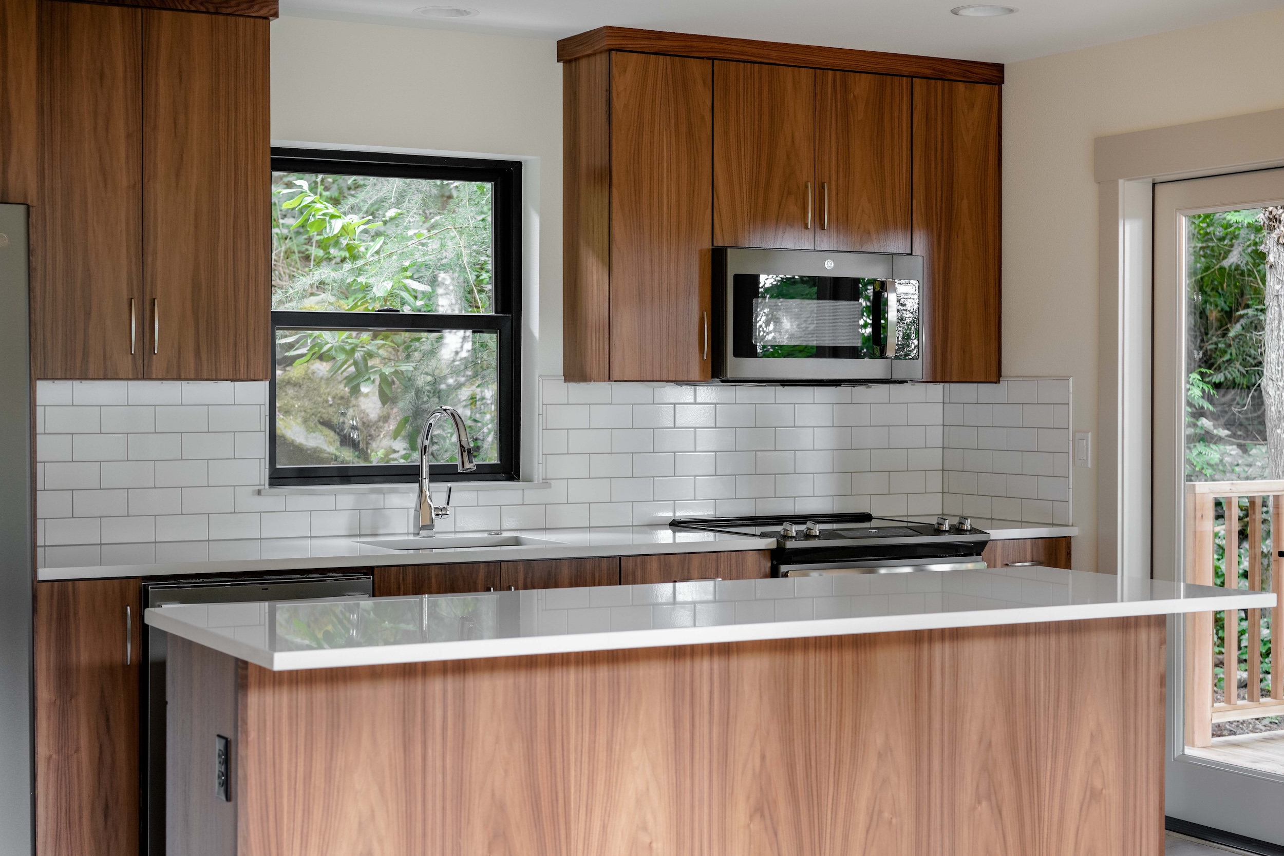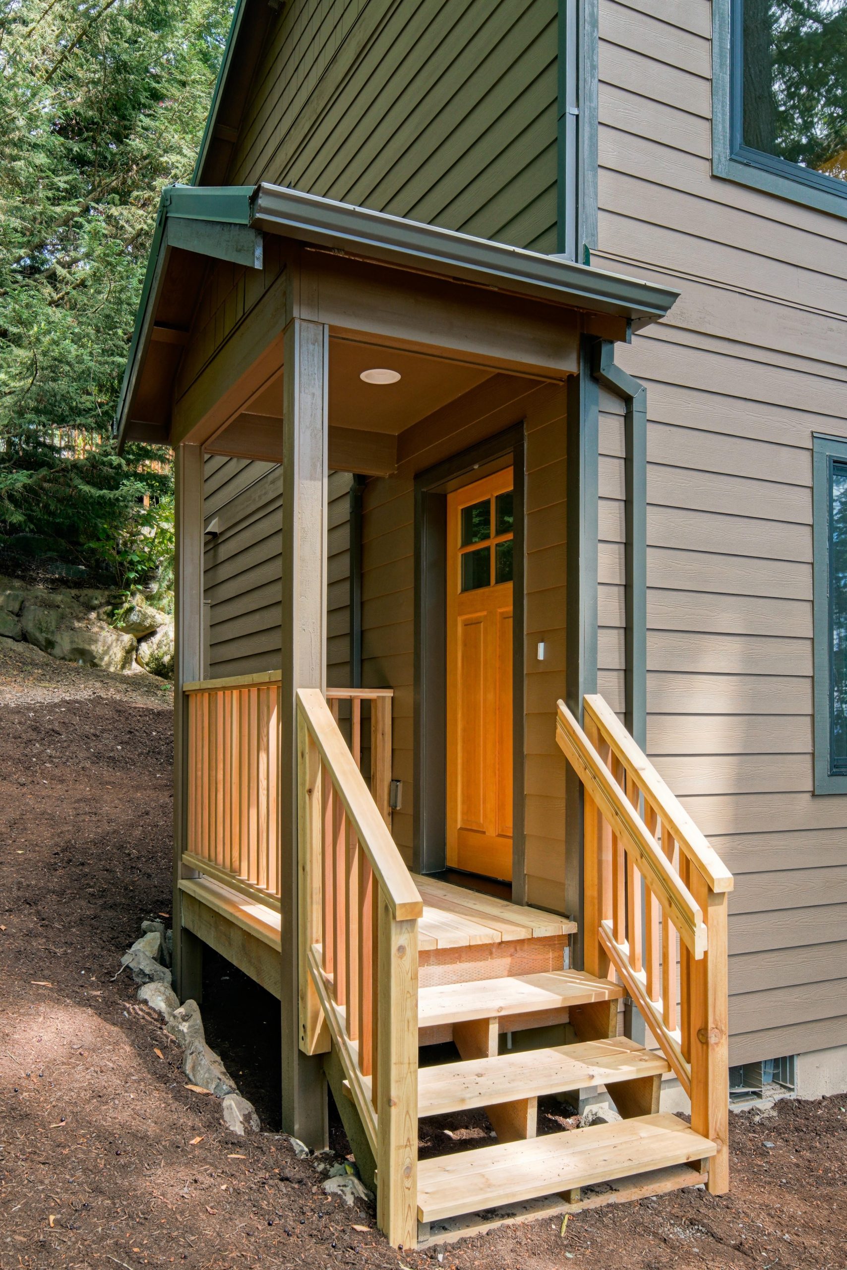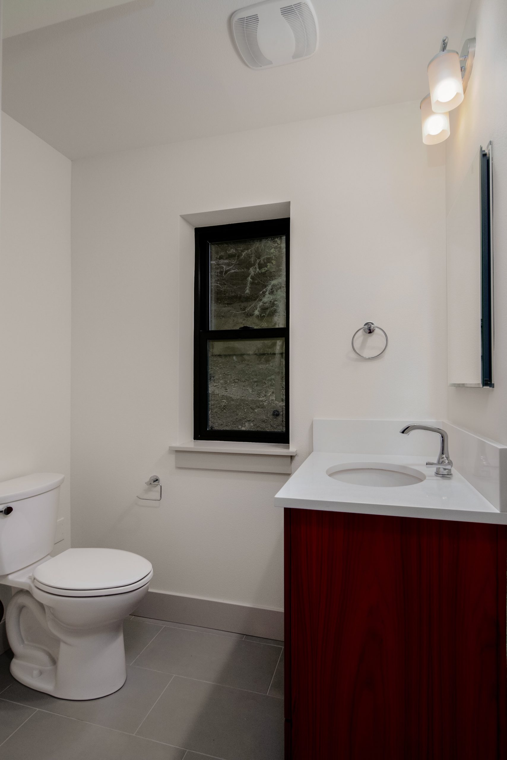 Offering 800 livable square feet and two parking spaces, this ADU embraces a forested view outside and a bright interior design.
