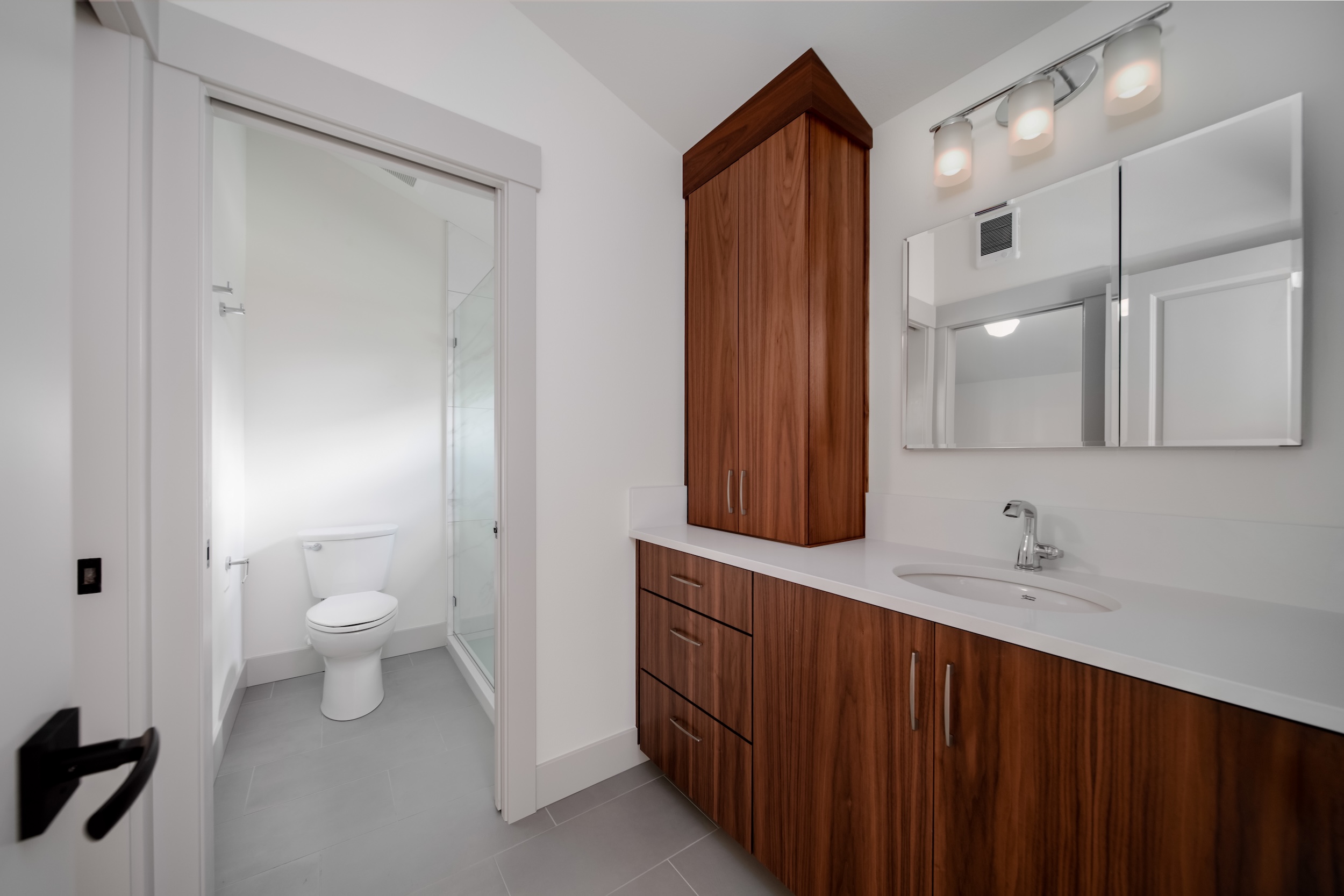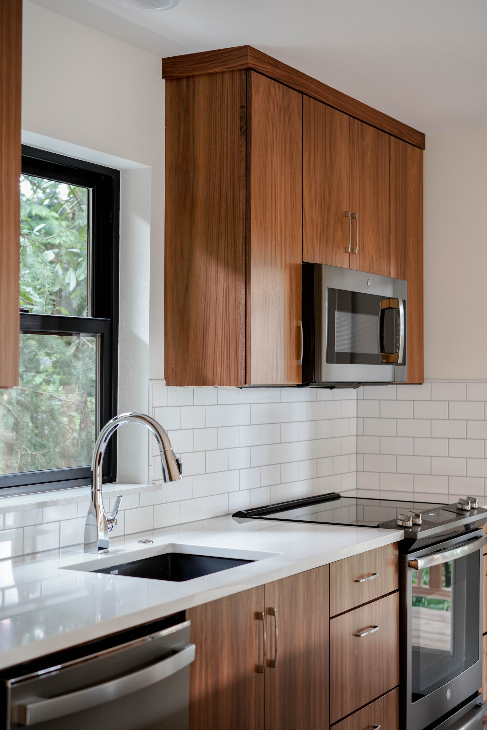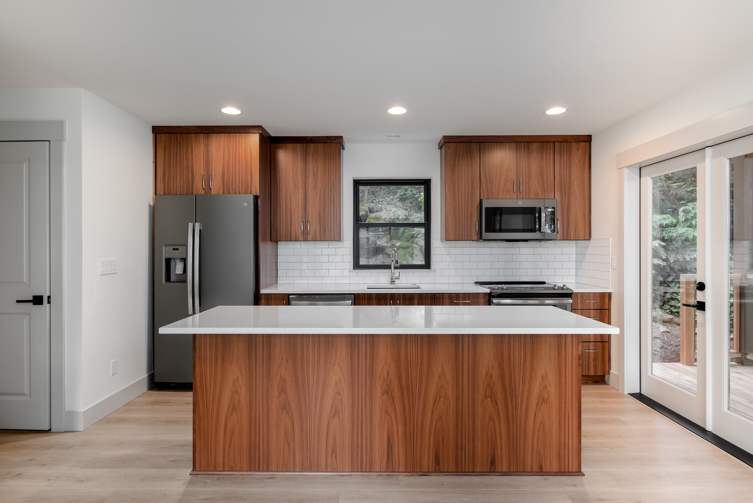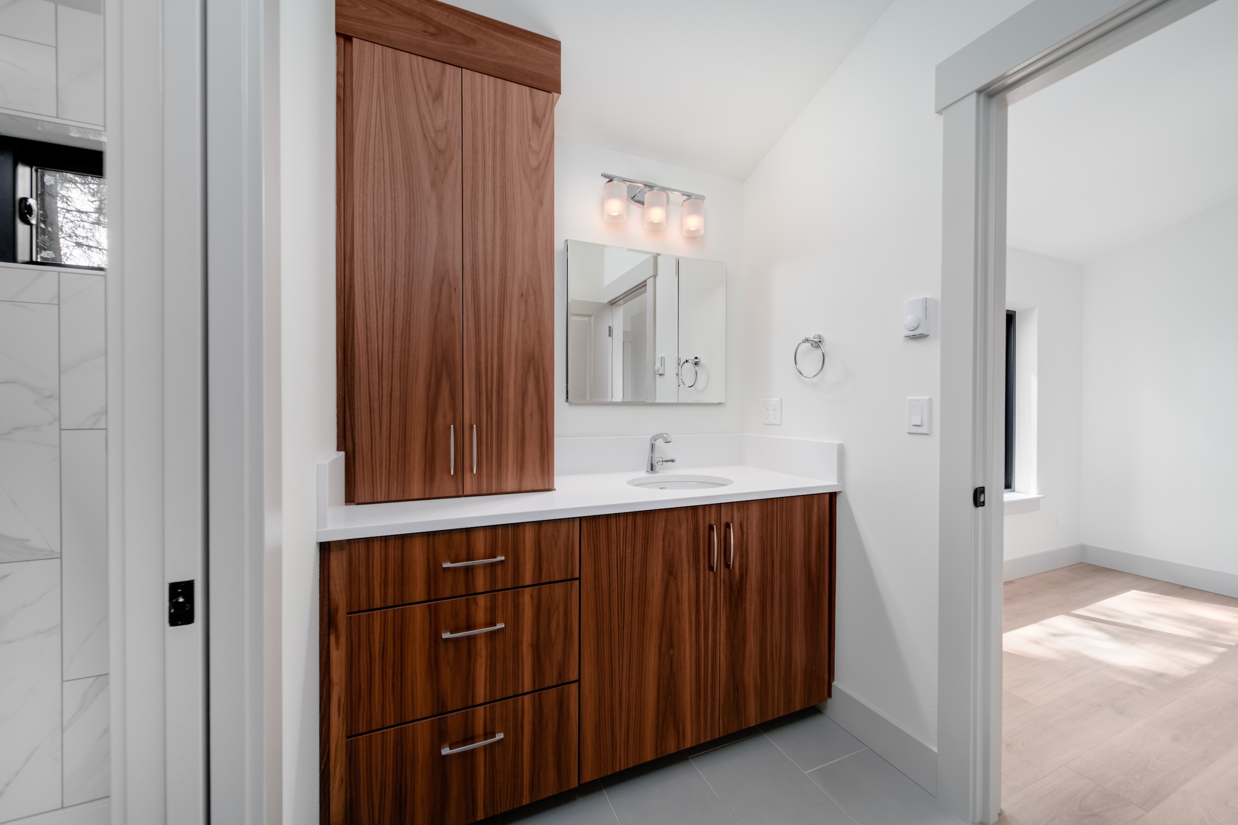 Offering 800 livable square feet and two parking spaces, this ADU embraces a forested view outside and a bright interior design.