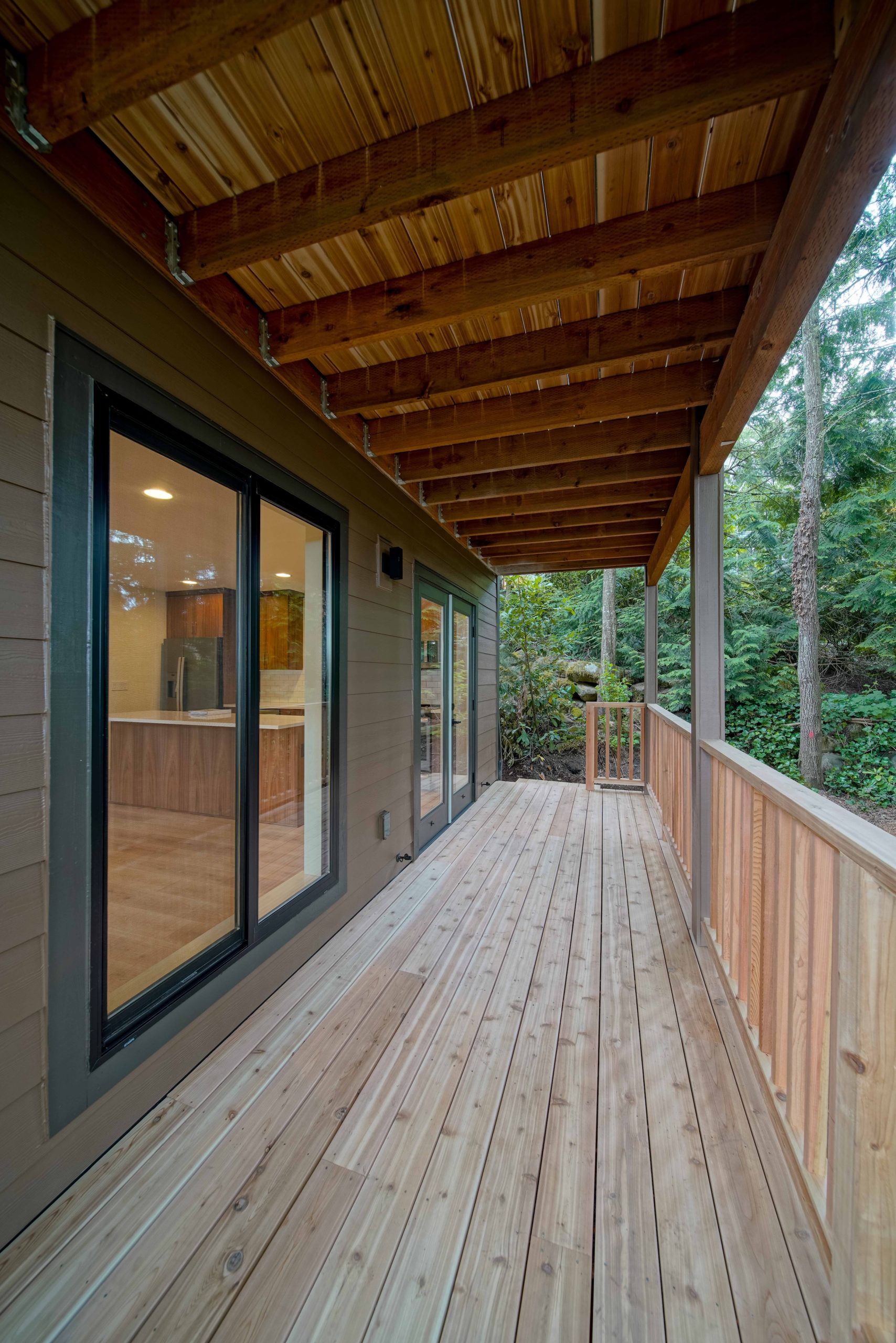 The meticulously planned detached 2-bedroom 1.5 bath ADU was built with the intention to use as a rental. The ADU mirrors the main house with its metal roof and exterior color and boasts two decks that provide views while maintaining privacy from the main dwelling.