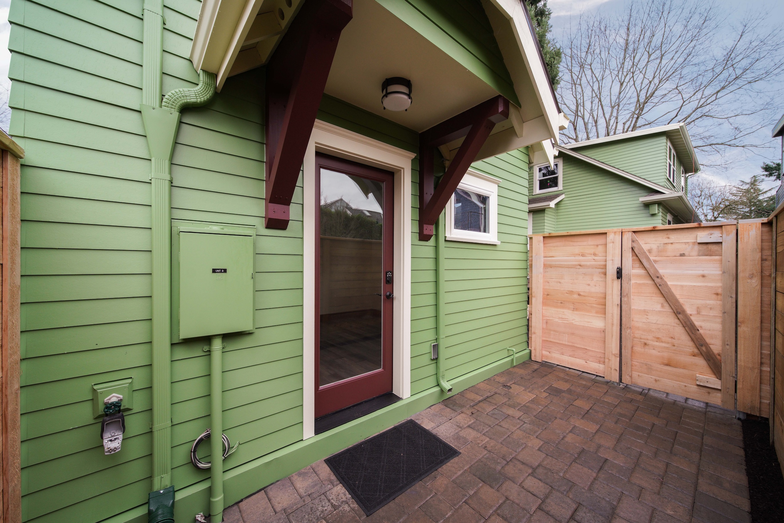 A private patio with a separate property entry offers a serene outdoor retreat.