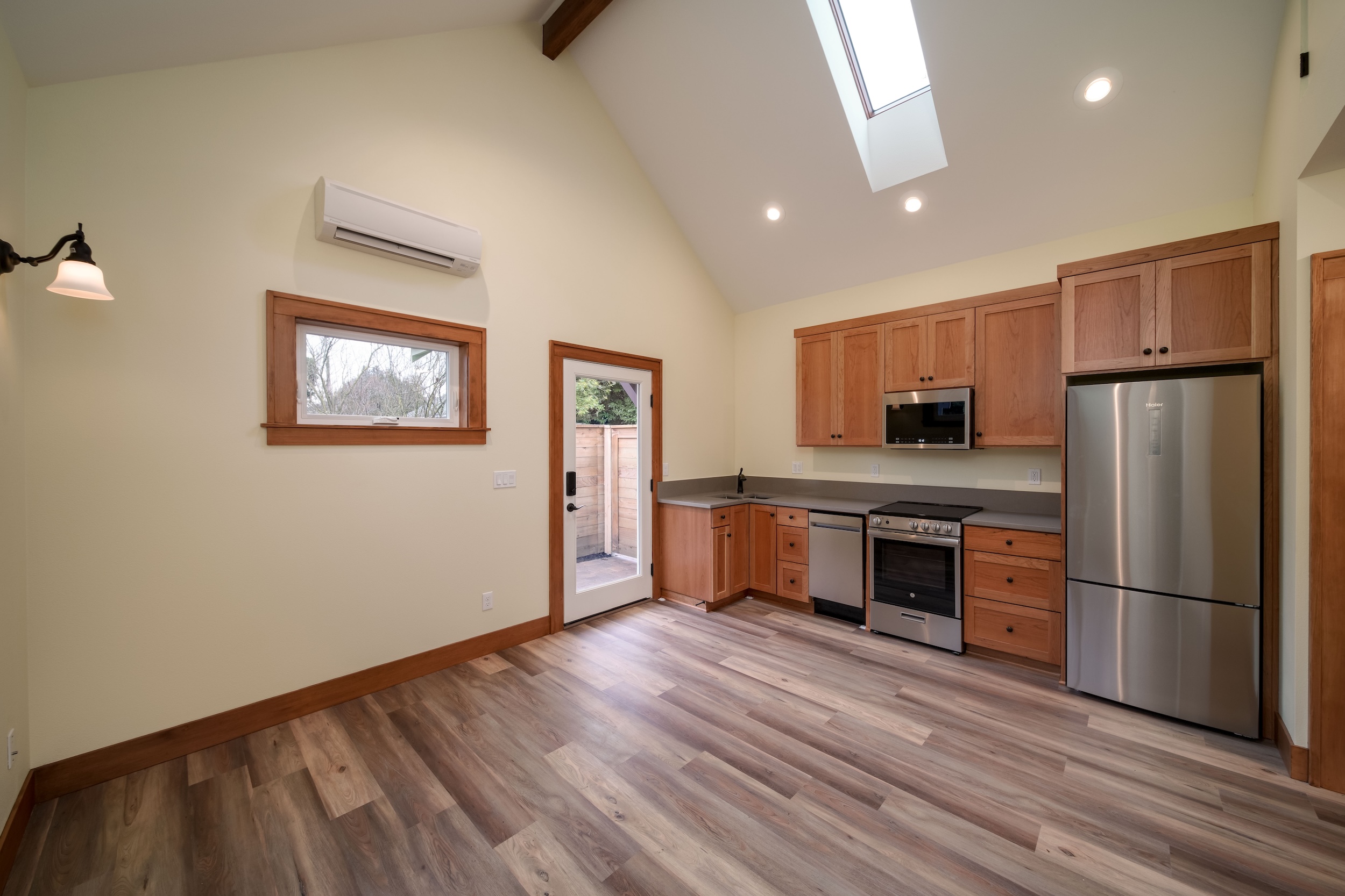 A standout feature is the clearstory window positioned above where the bed will be placed, flooding the interior with natural light while preserving valuable wall space. Durable finishes ensure longevity, making it ideal for rental purposes.