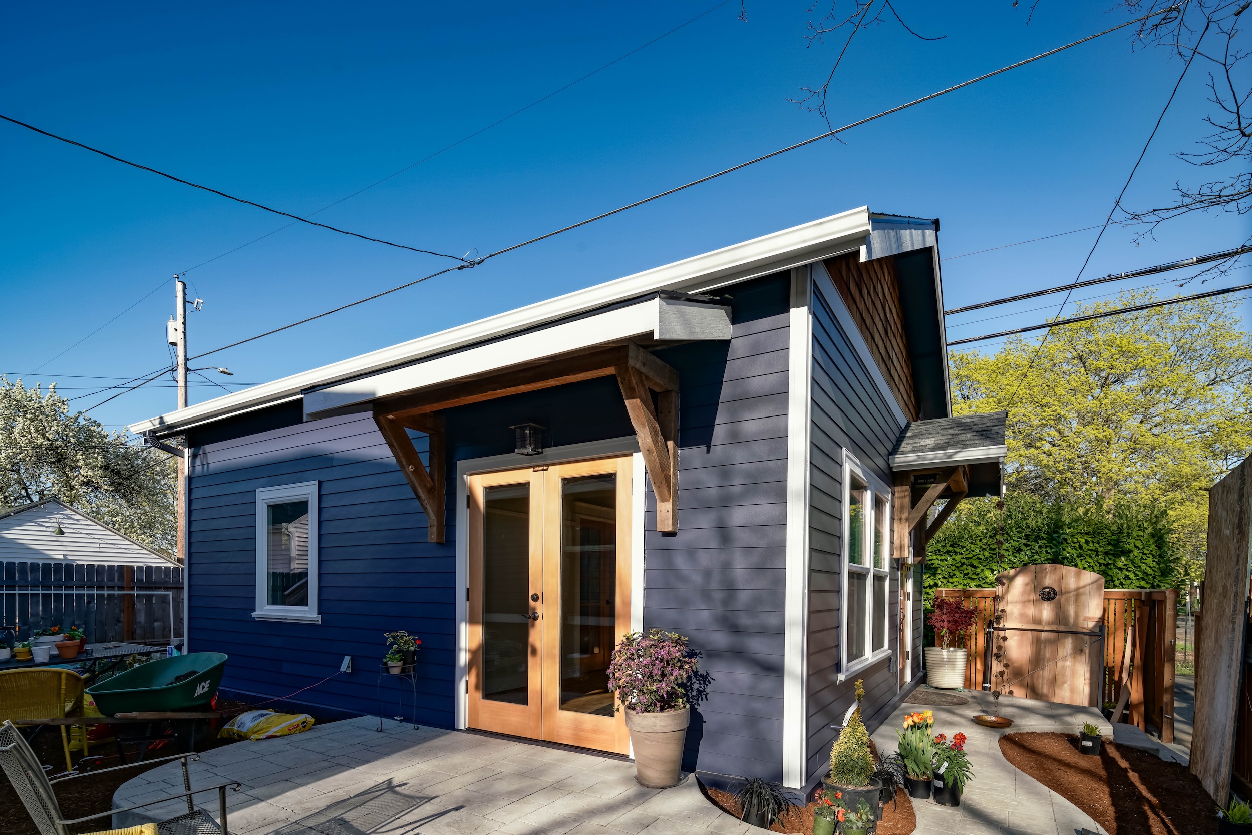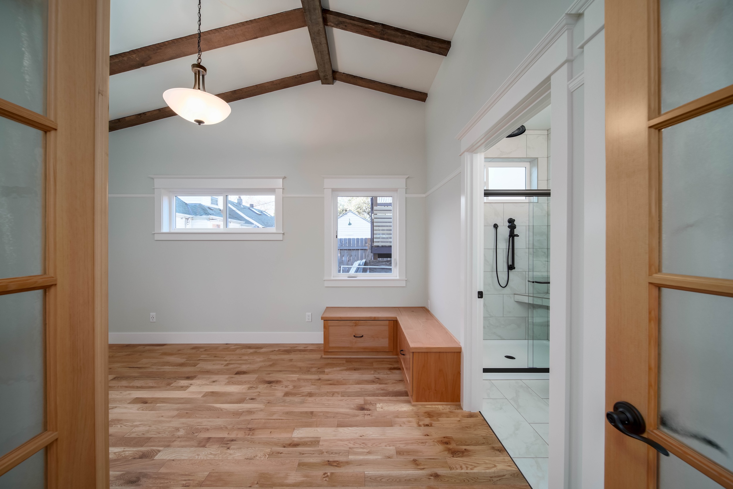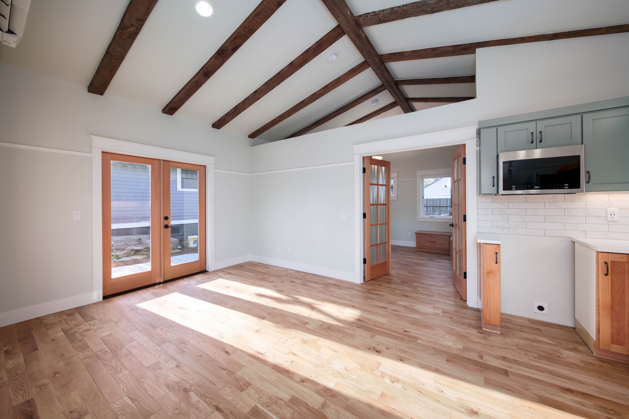 Full-lite French doors open up to both a side patio and the bedroom, providing seamless indoor-outdoor living. And for added comfort, a bidet with a heated seat awaits in the bathroom. This craftsman-style ADU truly doesn’t miss a beat.