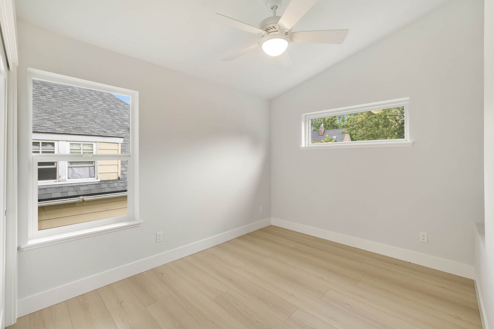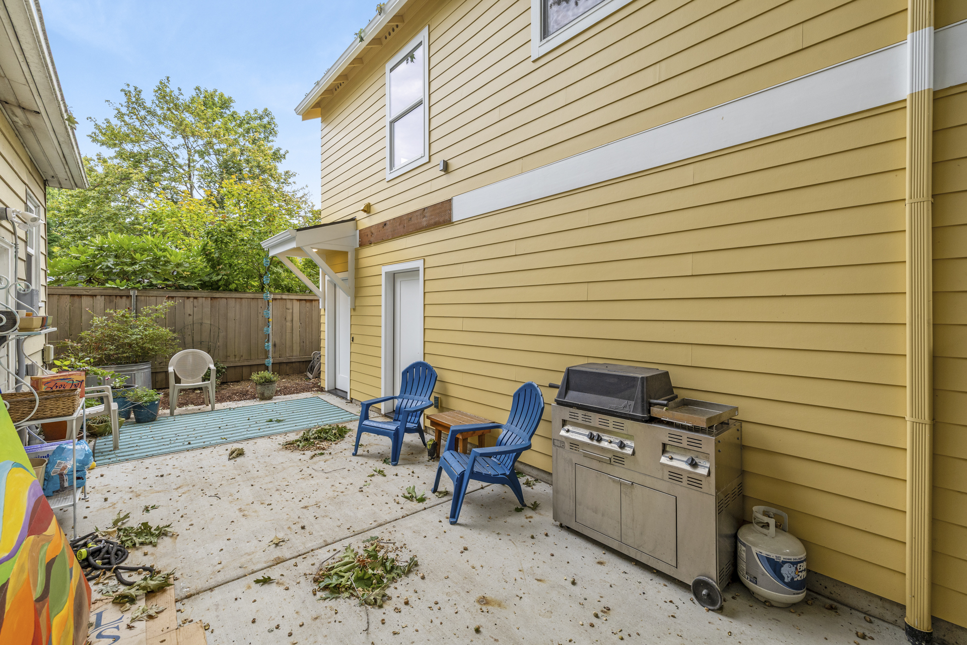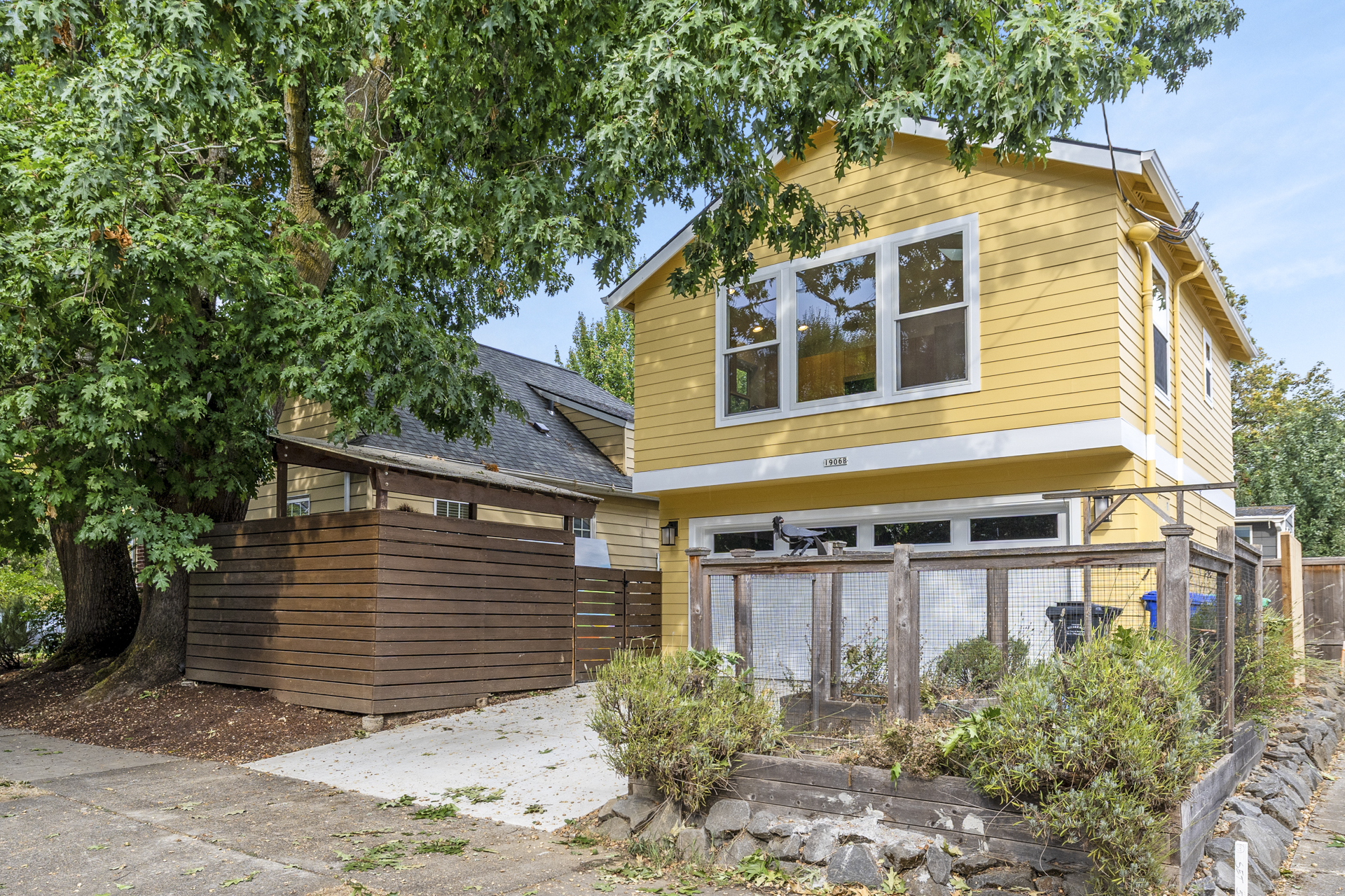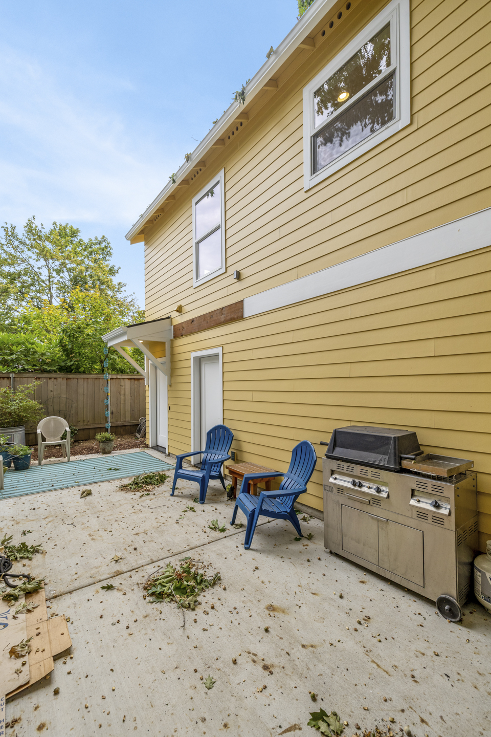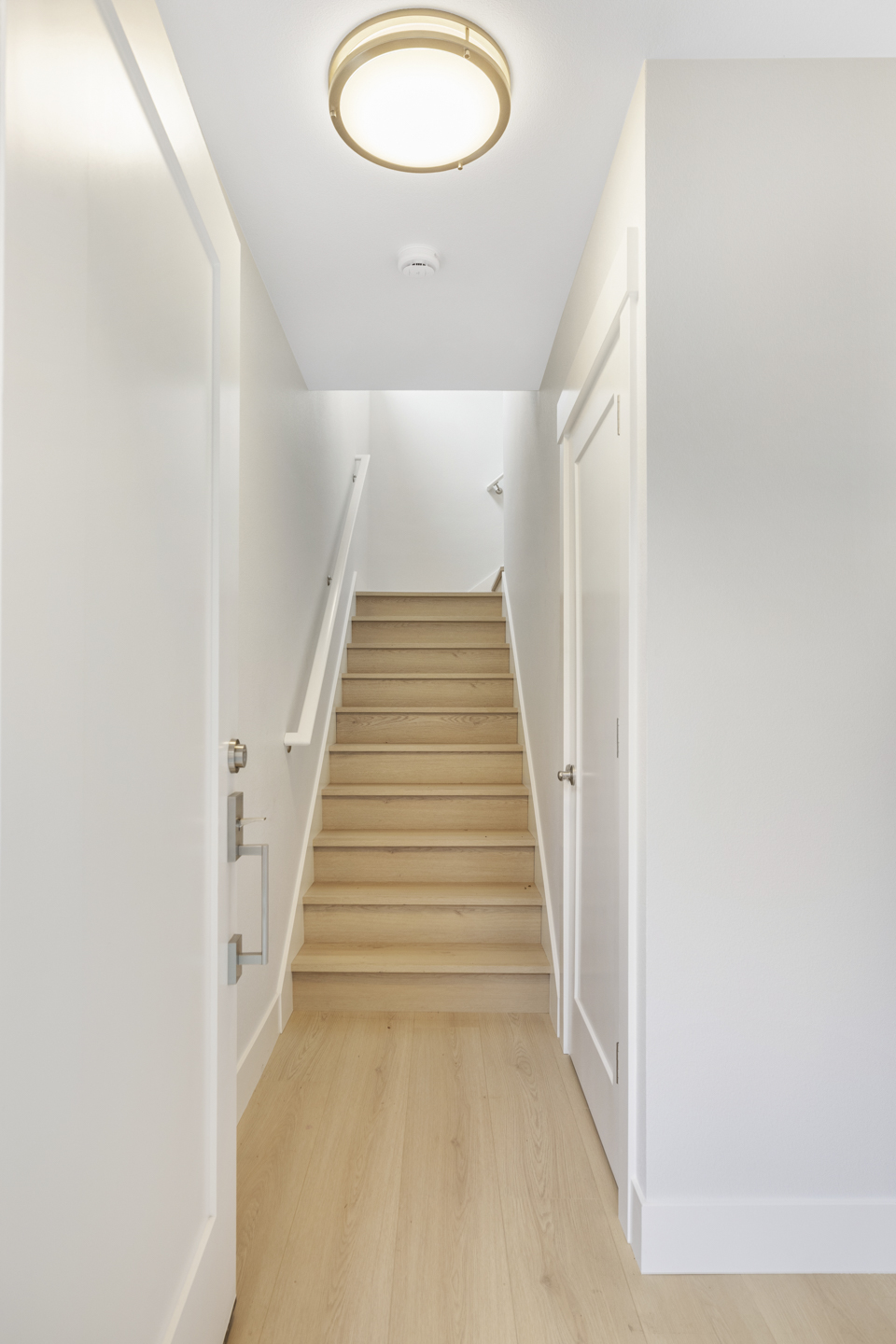 The private entry leads to a bright and colorful exterior that reflects the vibrancy of its owner, while the interior offers a soft, cozy retreat with just the right amount of separation for quiet living above. A dedicated laundry space is conveniently located in the 1st floor entry foyer.