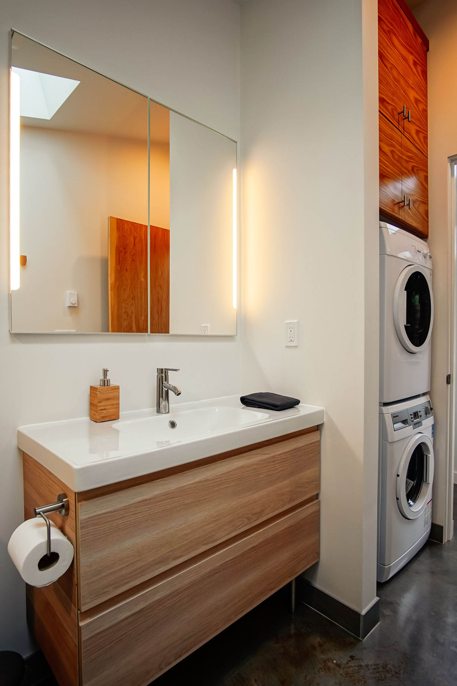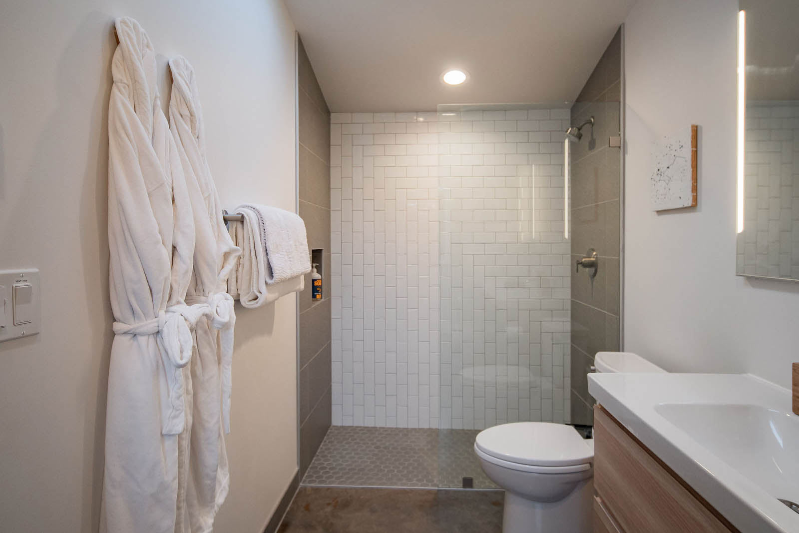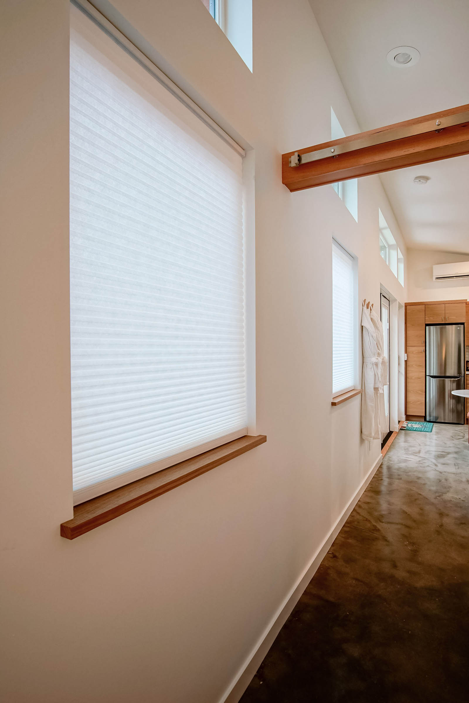 The separation of yard space between the ADU and the main home offers privacy and extends indoor-outdoor living. Inside, universal design concepts ensure accessibility, with wider door openings and a curbless shower for aging in place.