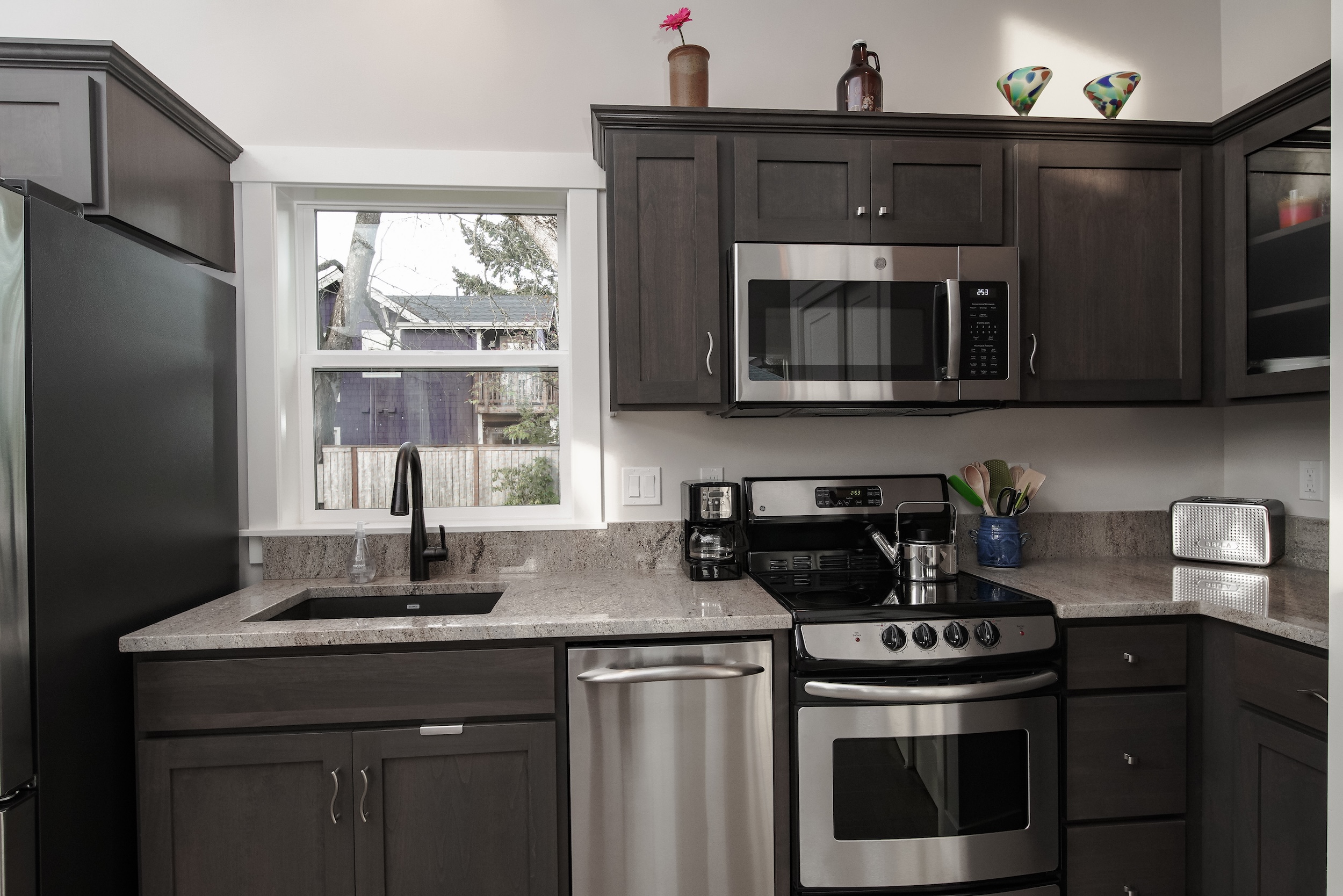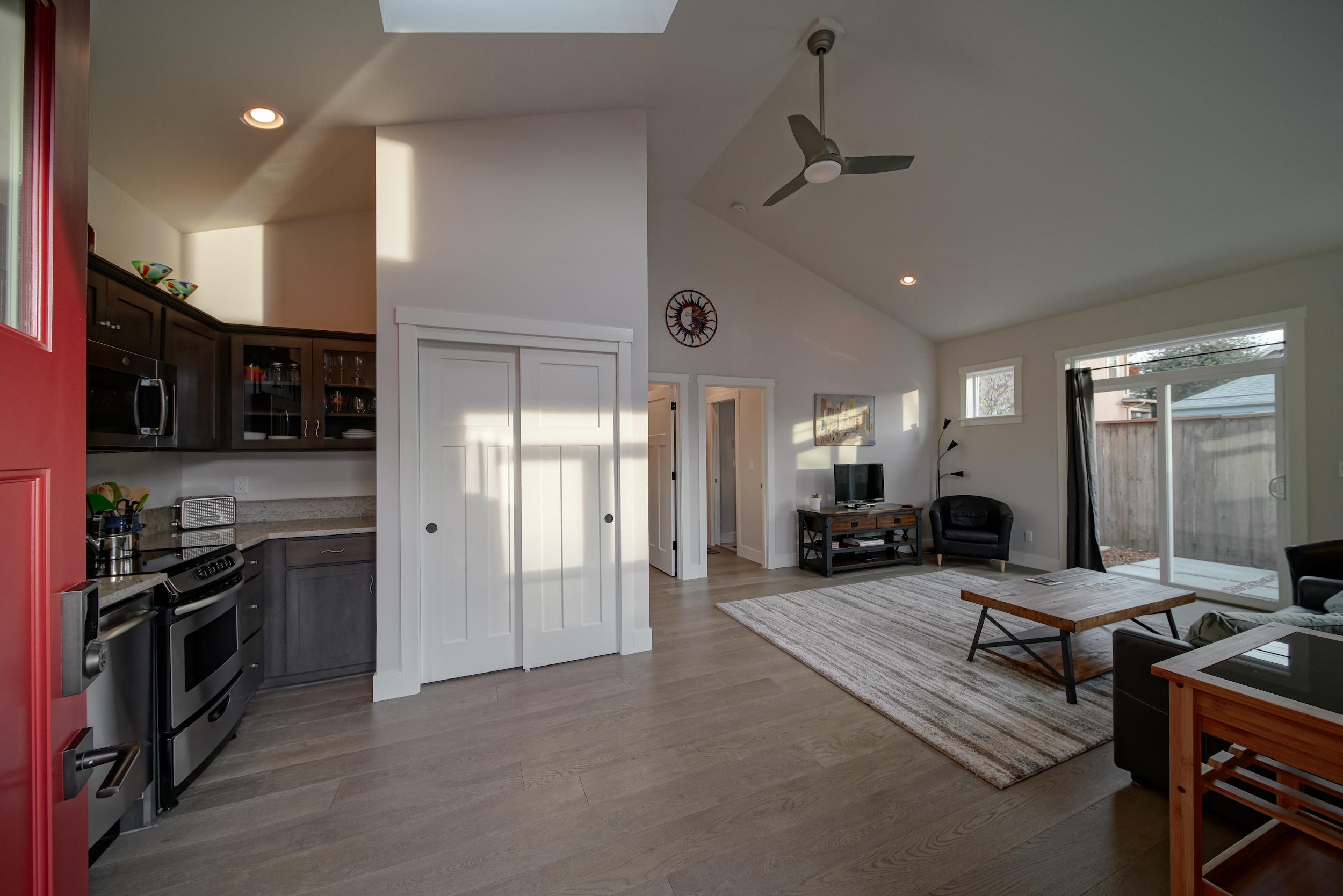 A longtime Portland resident, residing in the Richmond neighborhood on the east side, Kris Olson collaborated with Shelter Solutions to construct a bright, inviting, and generously spacious ADU for the enjoyment of family, friends, and visitors.