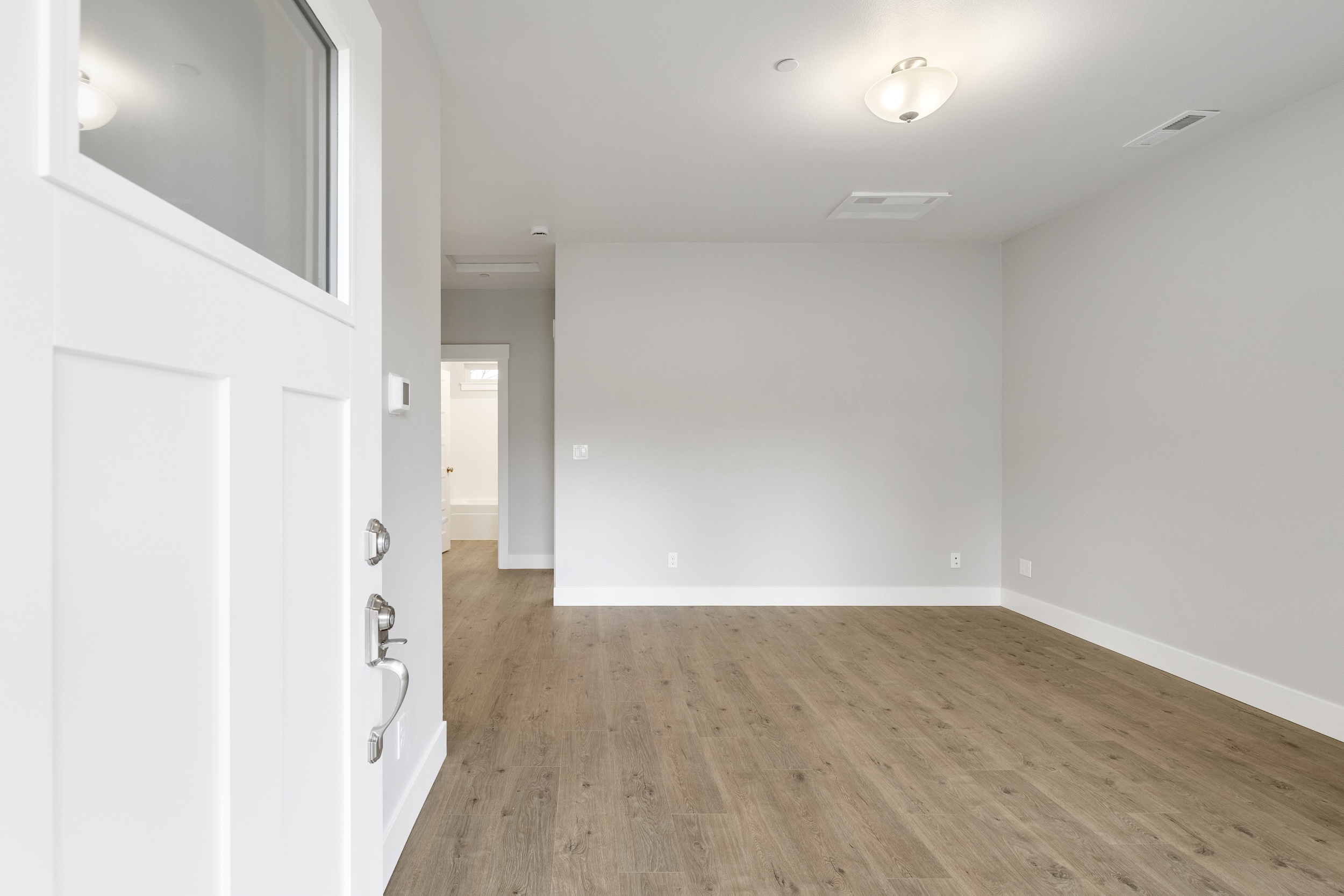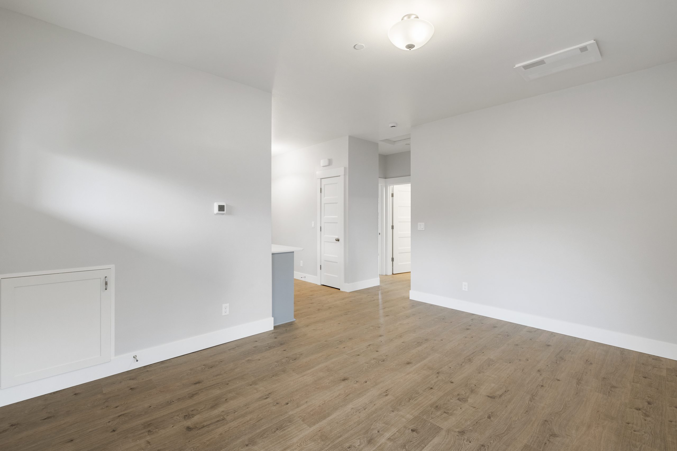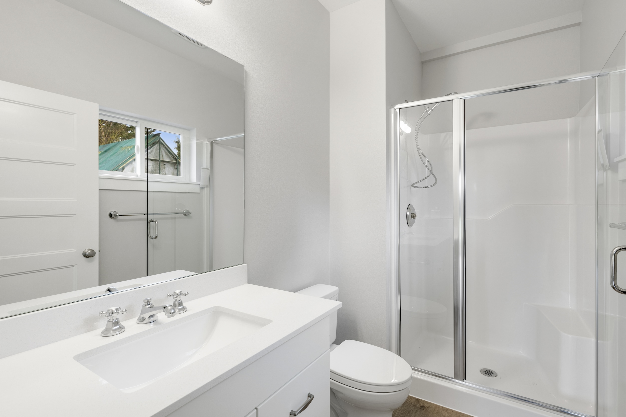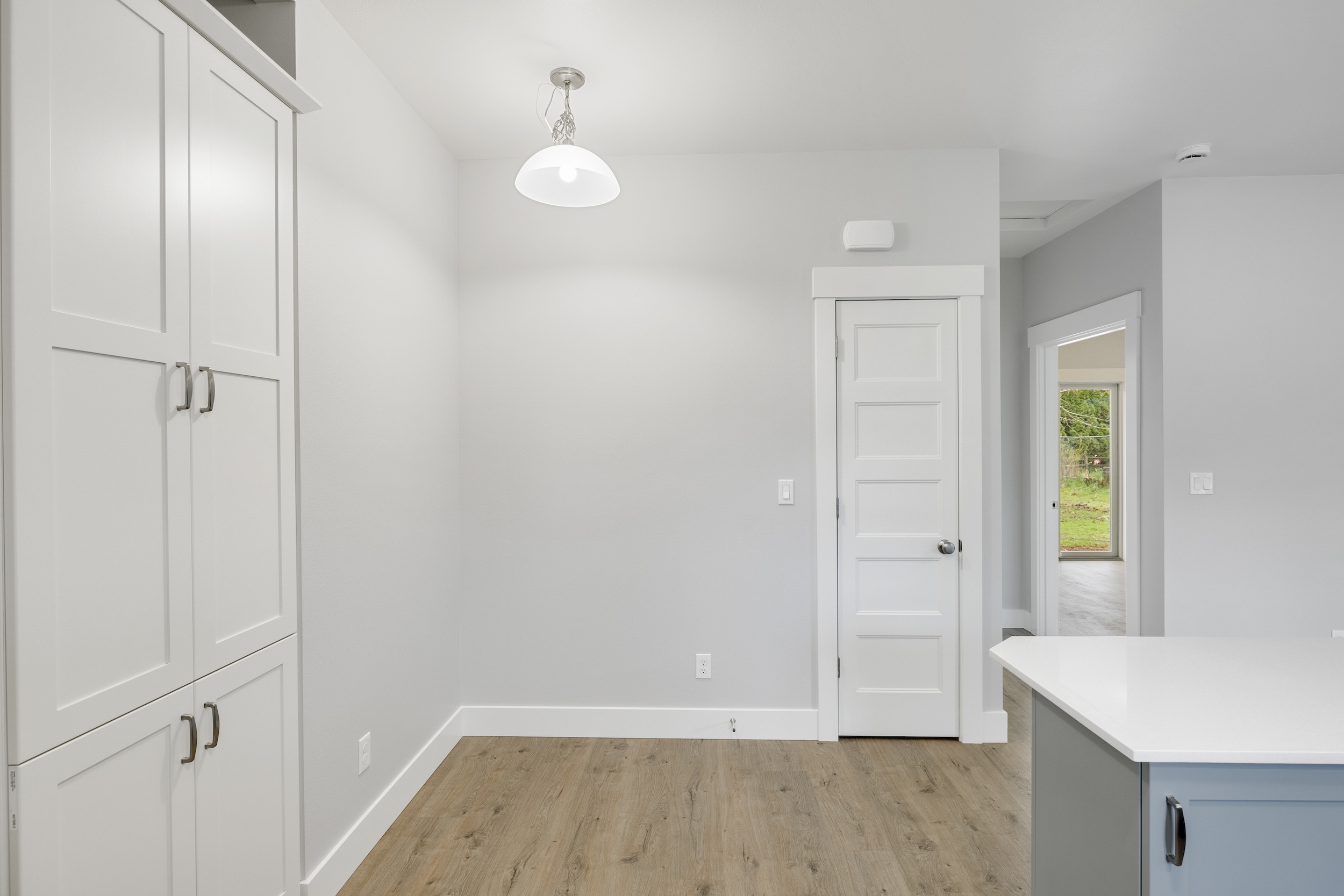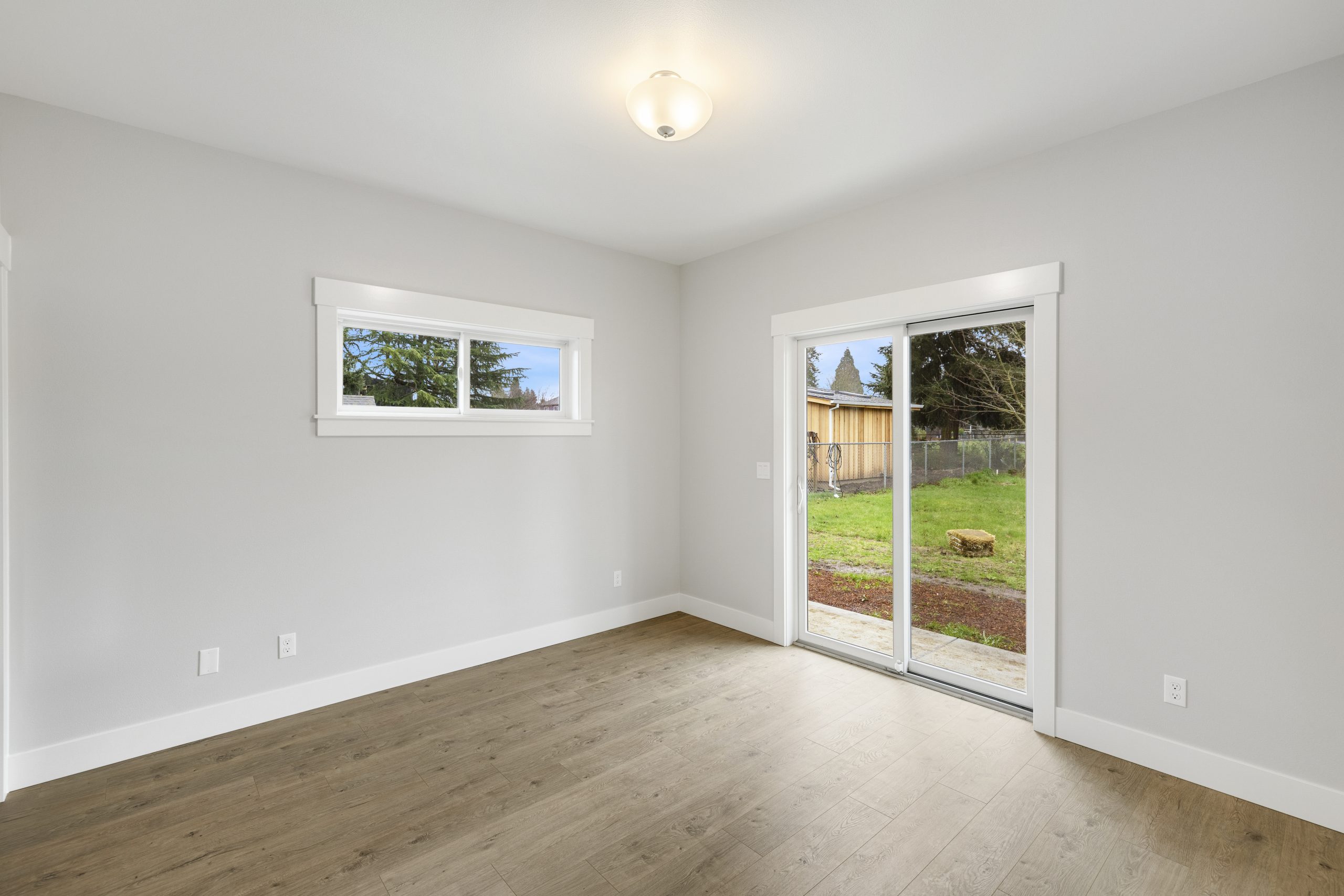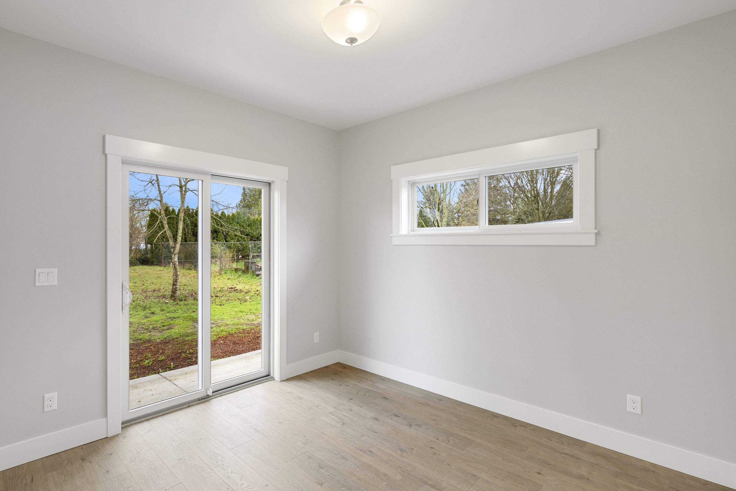 The kitchen is a favorite feature, adorned with beautiful Chloe blue tiles that reminded the client of an Oregon partly cloudy day. A cozy dining nook adds to the charm, and a side entry leads into a practical utility and laundry area. Thanks to the generous lot, the ADU enjoys both front and back yards—now ready to be transformed with the client’s landscaping vision into a lush, inviting retreat.