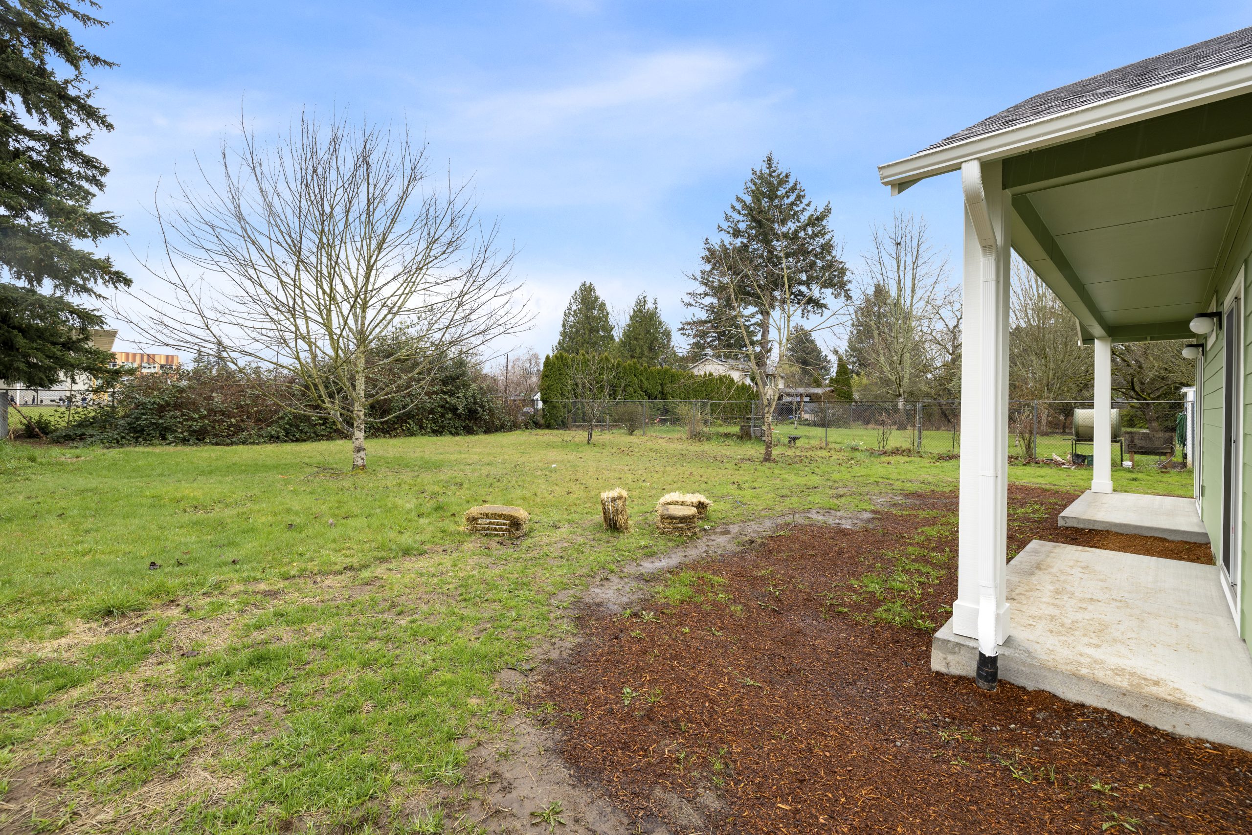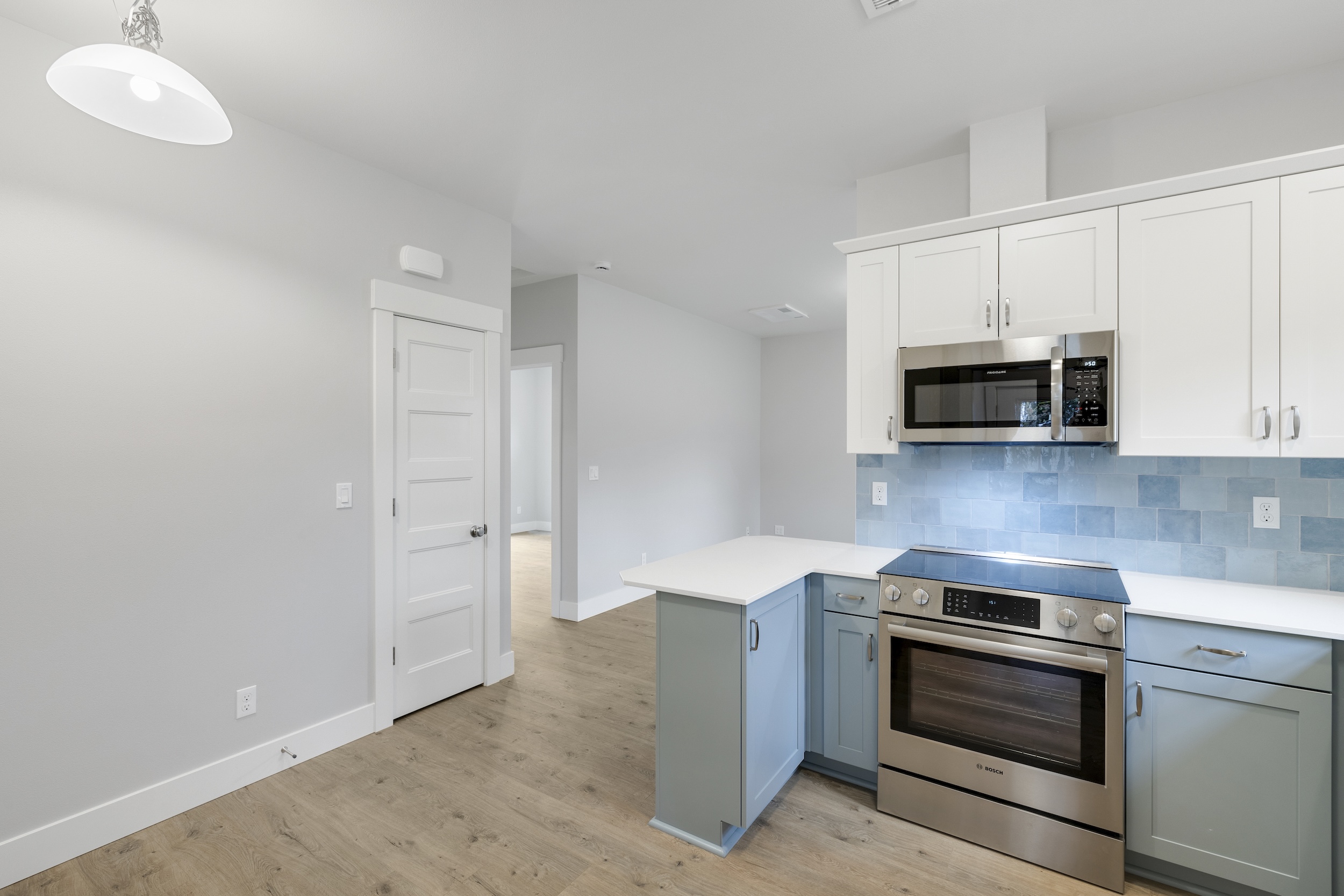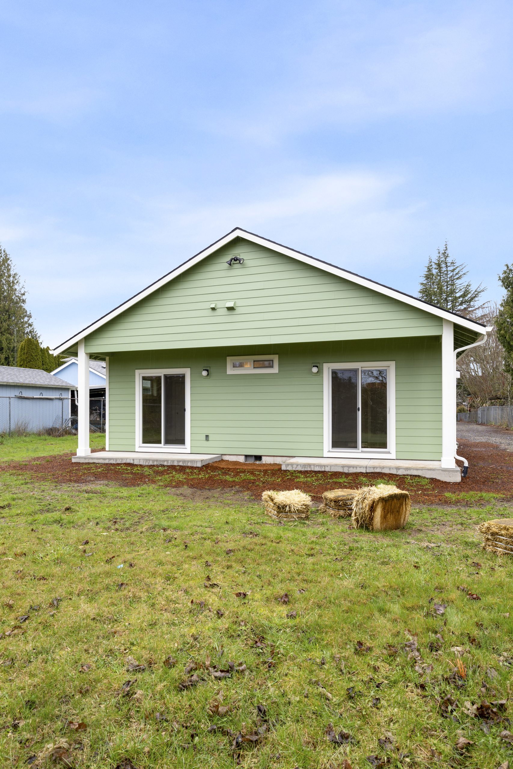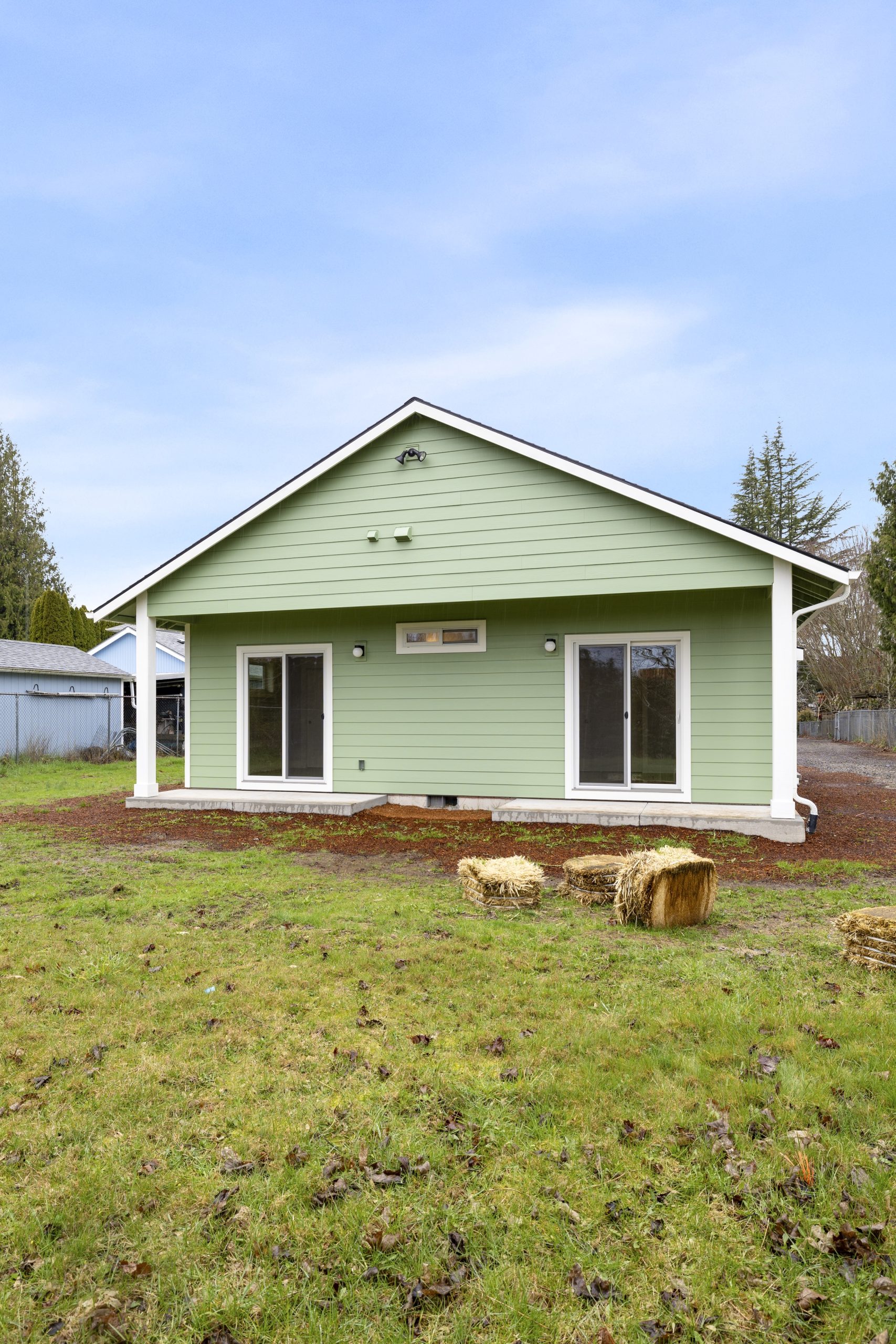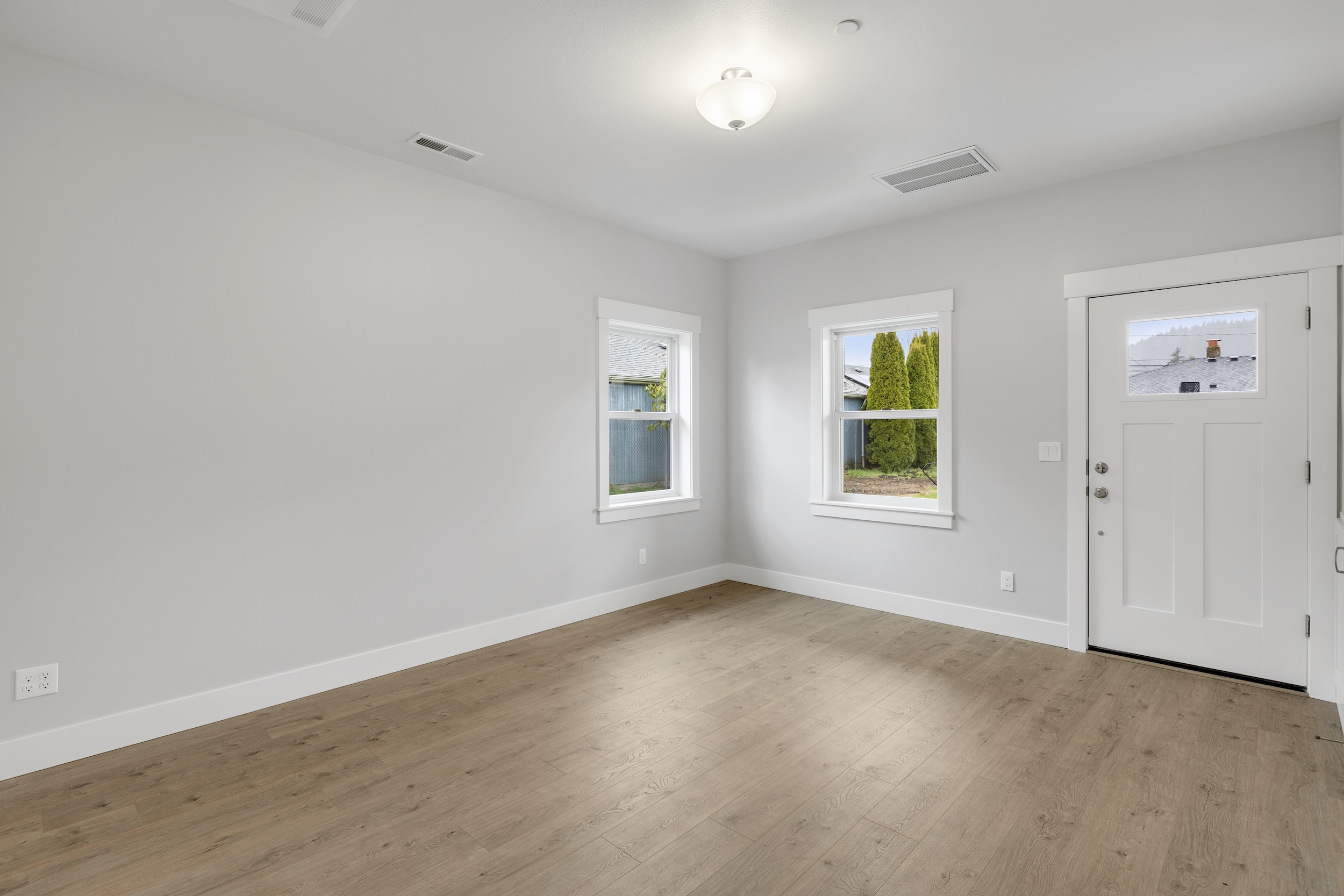 The kitchen is a favorite feature, adorned with beautiful Chloe blue tiles that reminded the client of an Oregon partly cloudy day. A cozy dining nook adds to the charm, and a side entry leads into a practical utility and laundry area. Thanks to the generous lot, the ADU enjoys both front and back yards—now ready to be transformed with the client’s landscaping vision into a lush, inviting retreat.