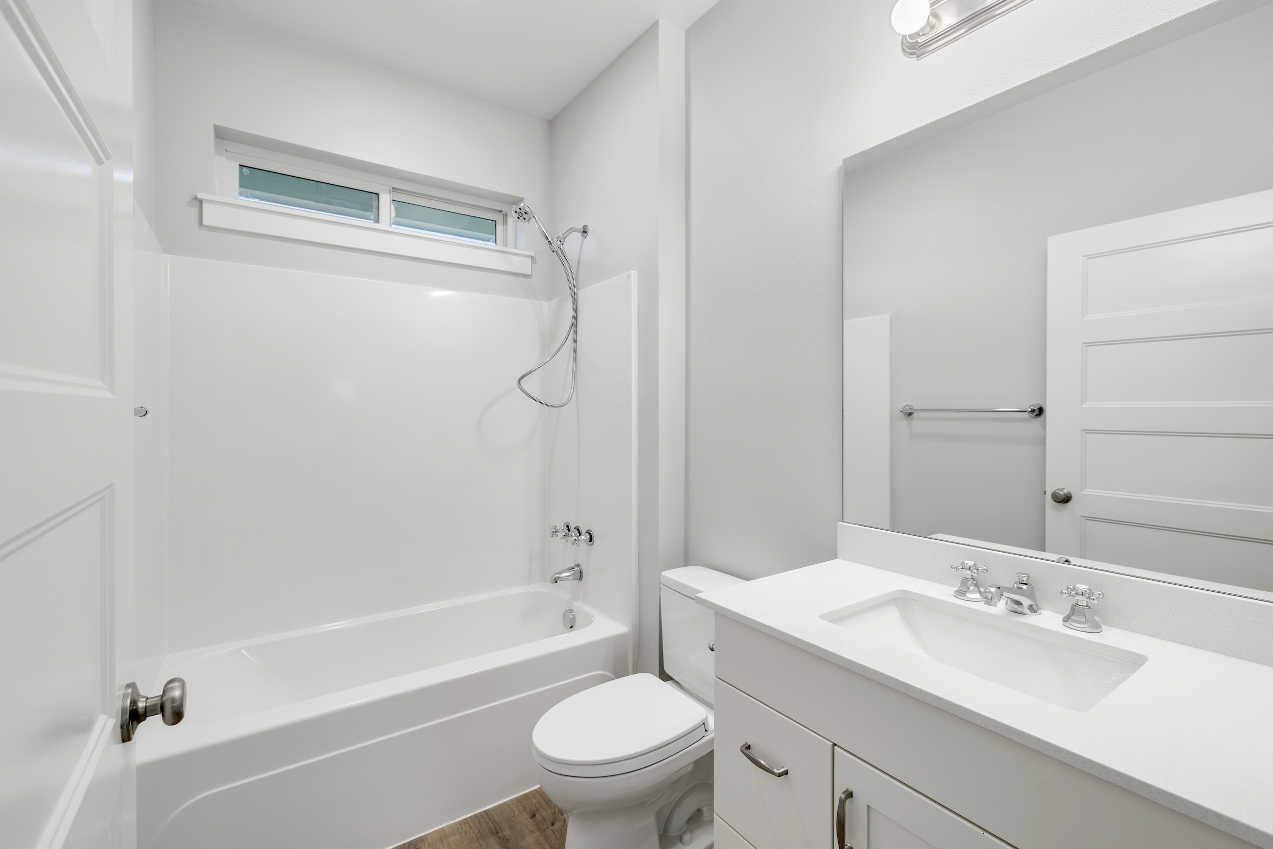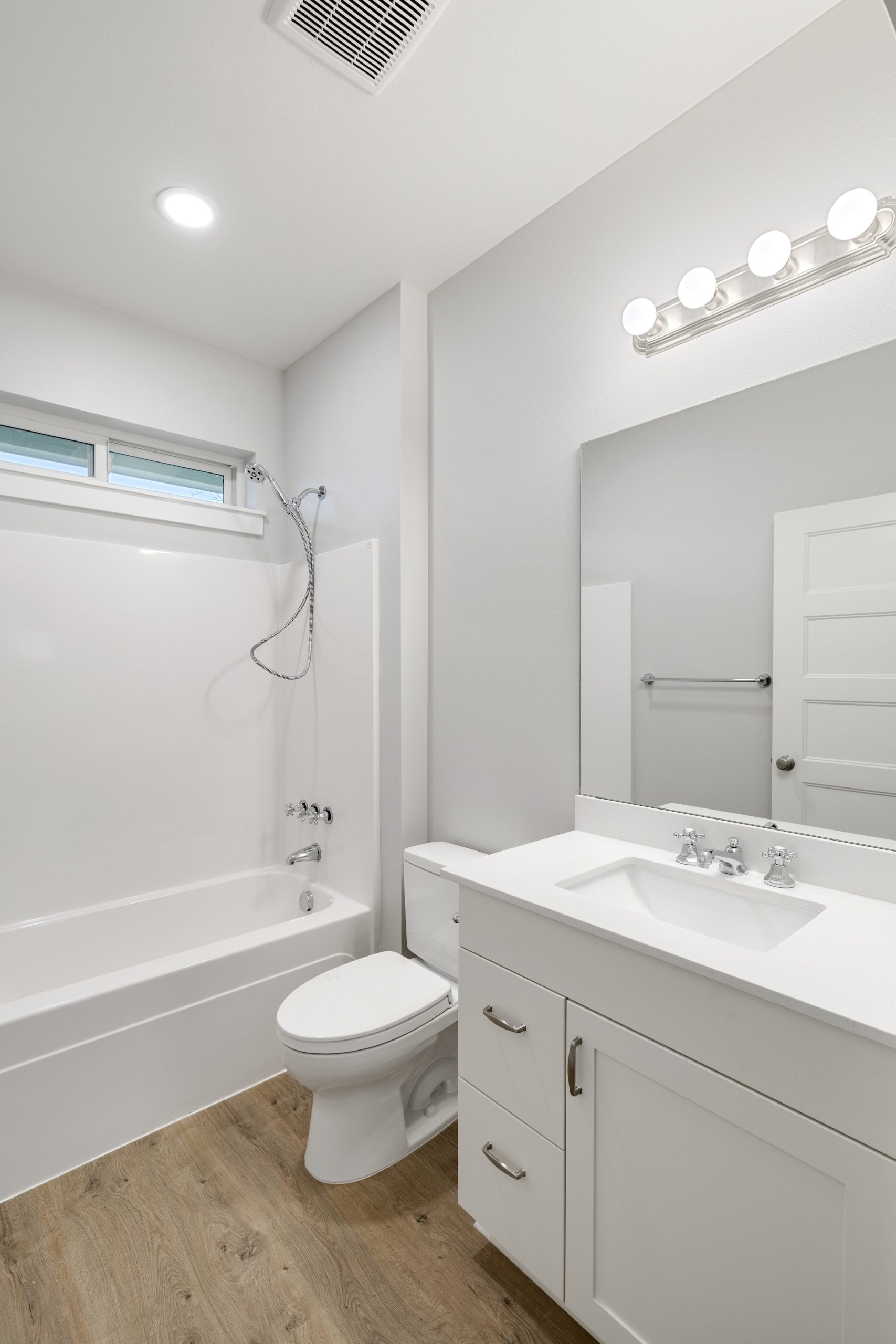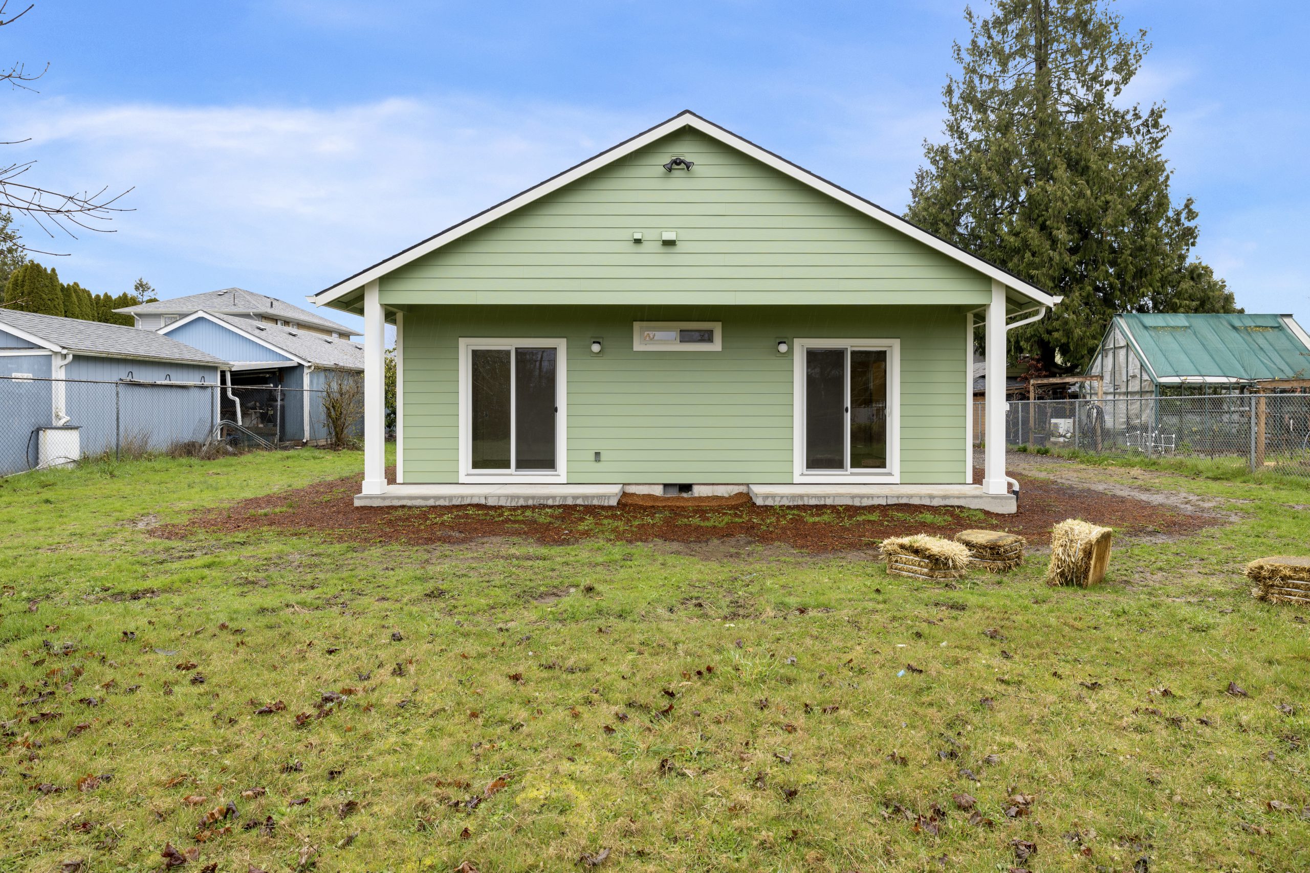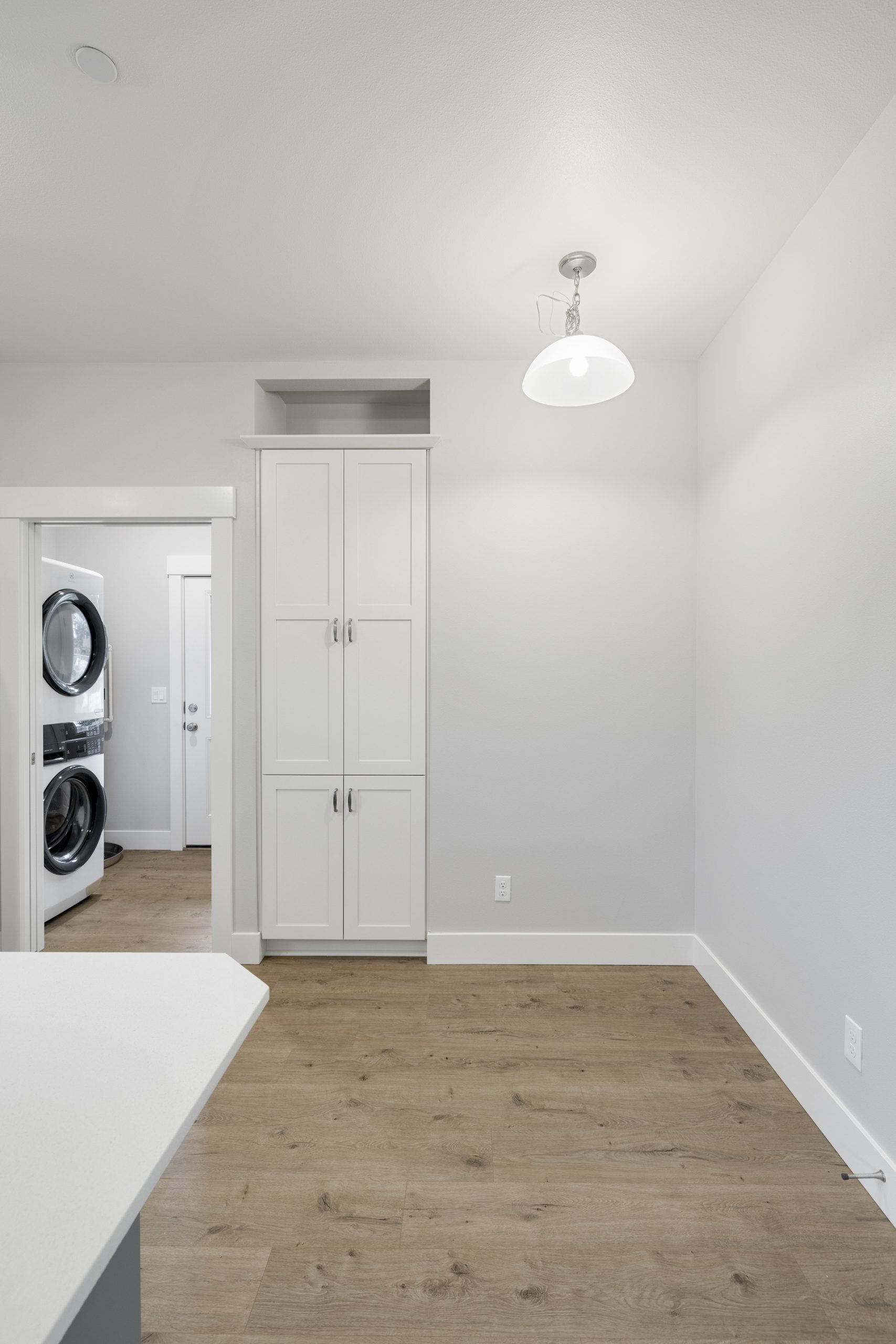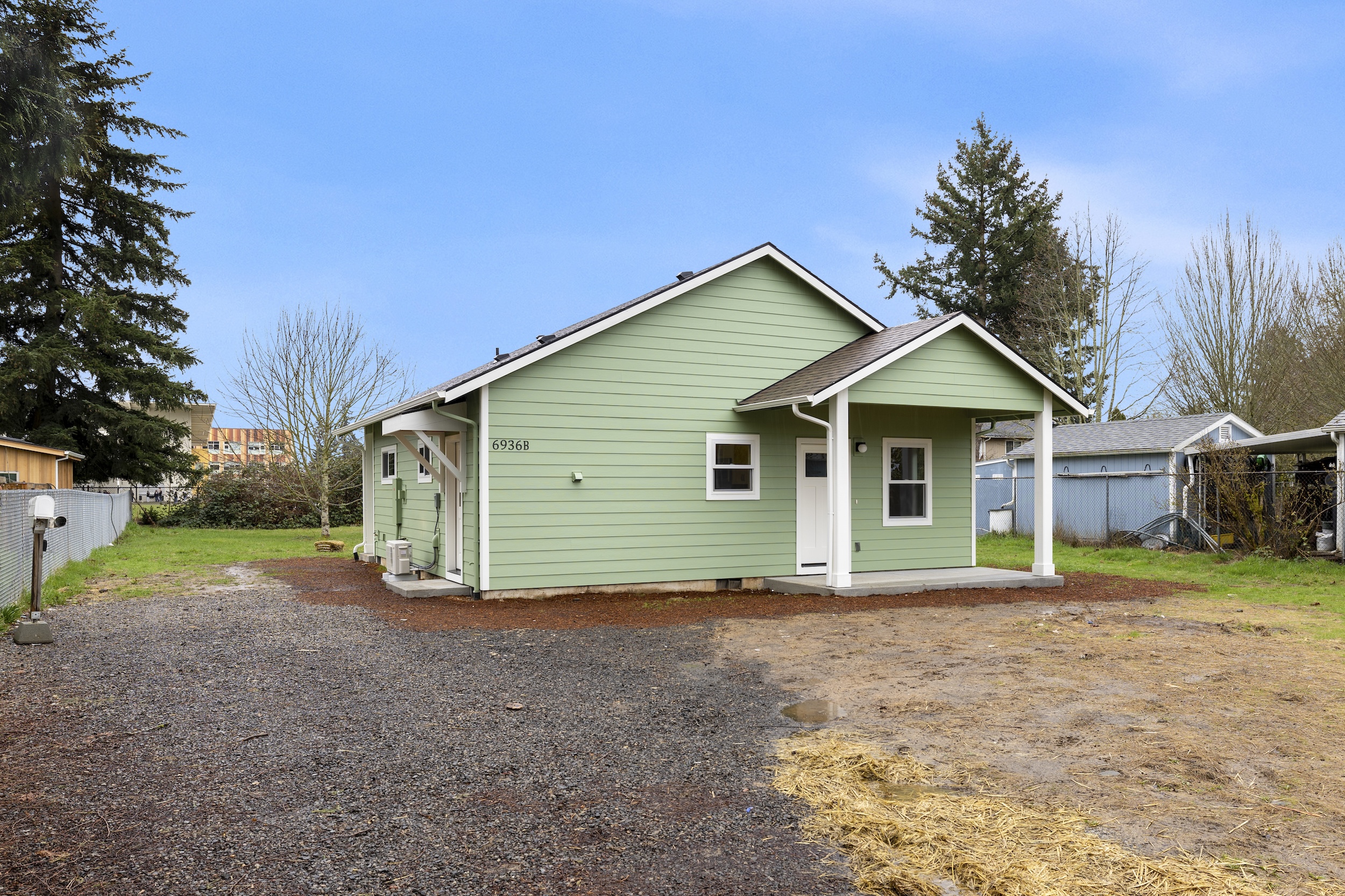 The kitchen is a favorite feature, adorned with beautiful Chloe blue tiles that reminded the client of an Oregon partly cloudy day. A cozy dining nook adds to the charm, and a side entry leads into a practical utility and laundry area. Thanks to the generous lot, the ADU enjoys both front and back yards—now ready to be transformed with the client’s landscaping vision into a lush, inviting retreat.