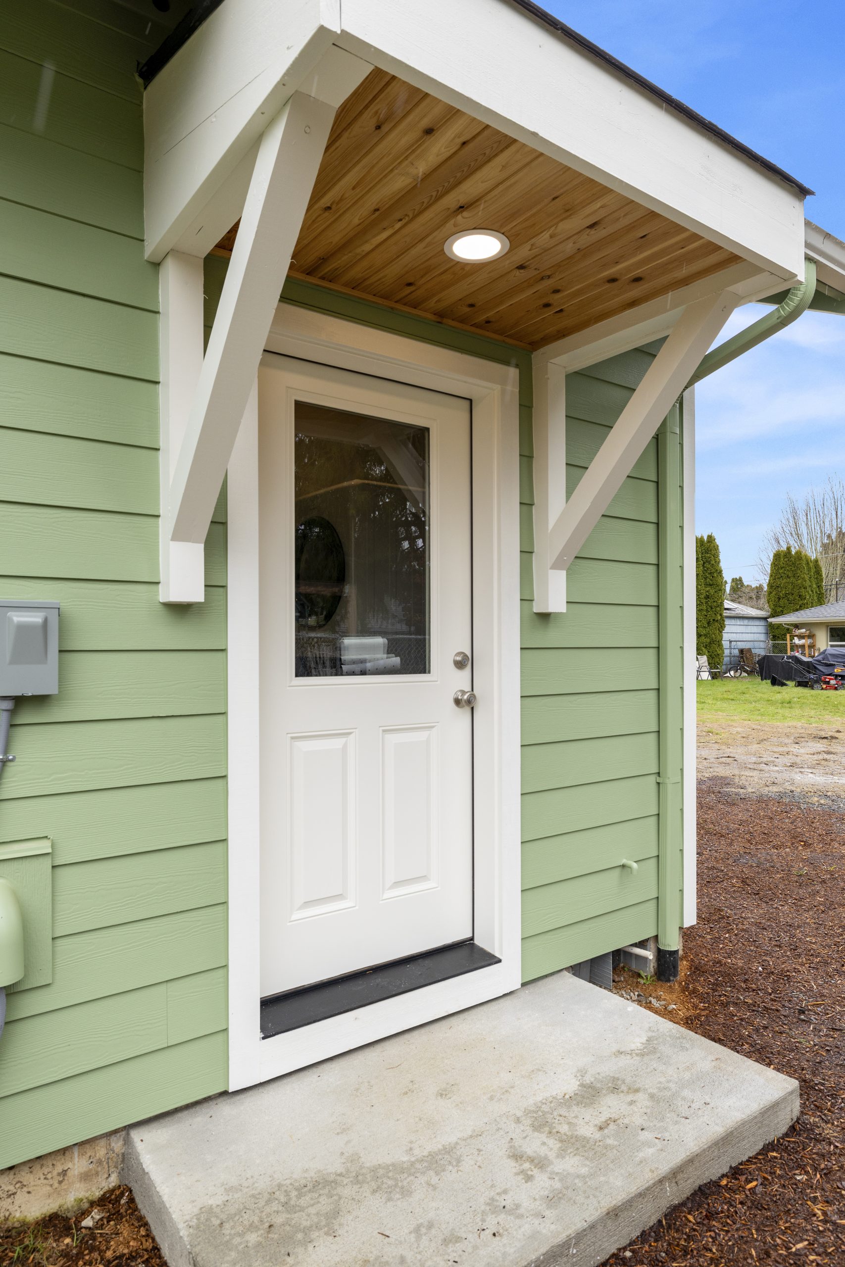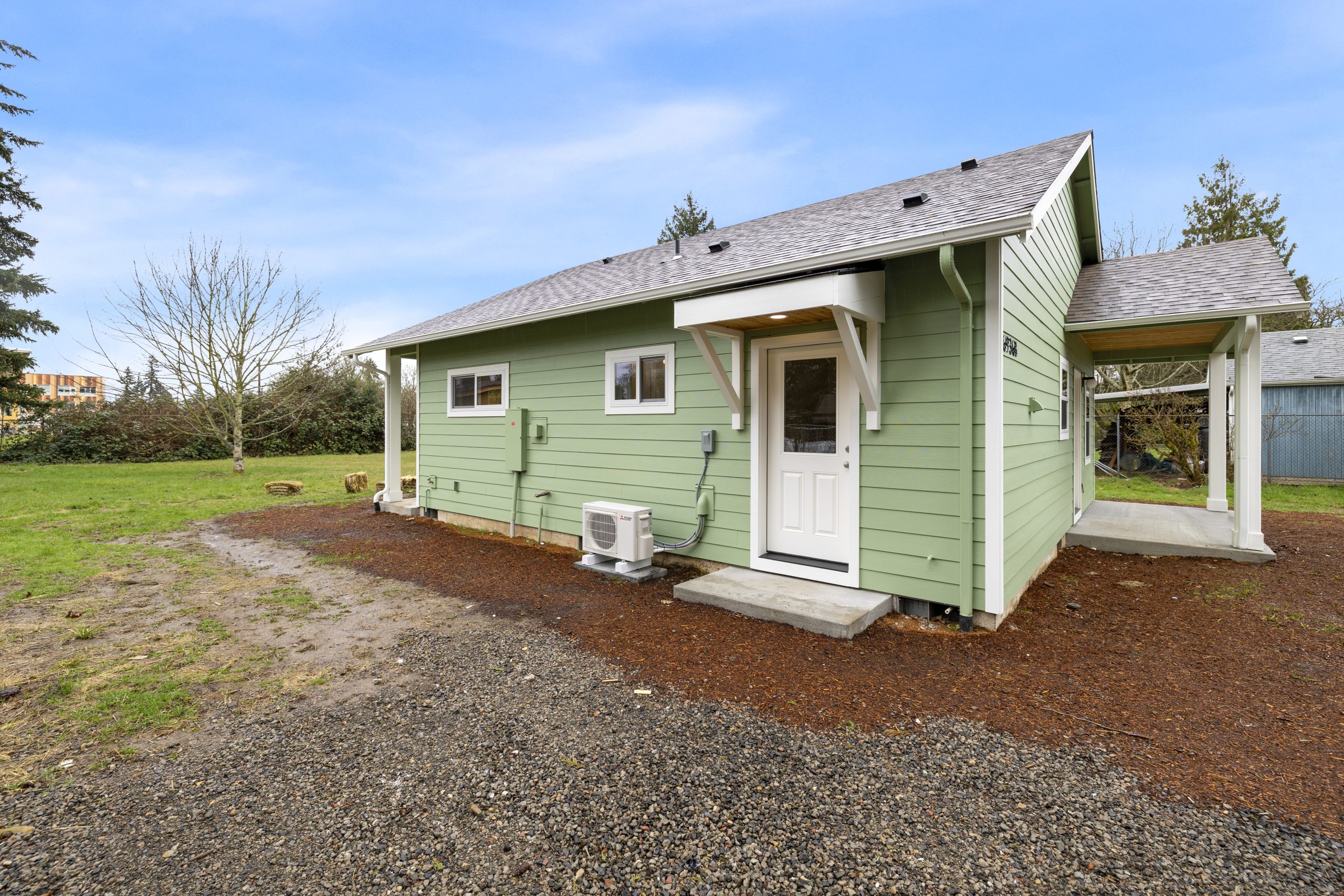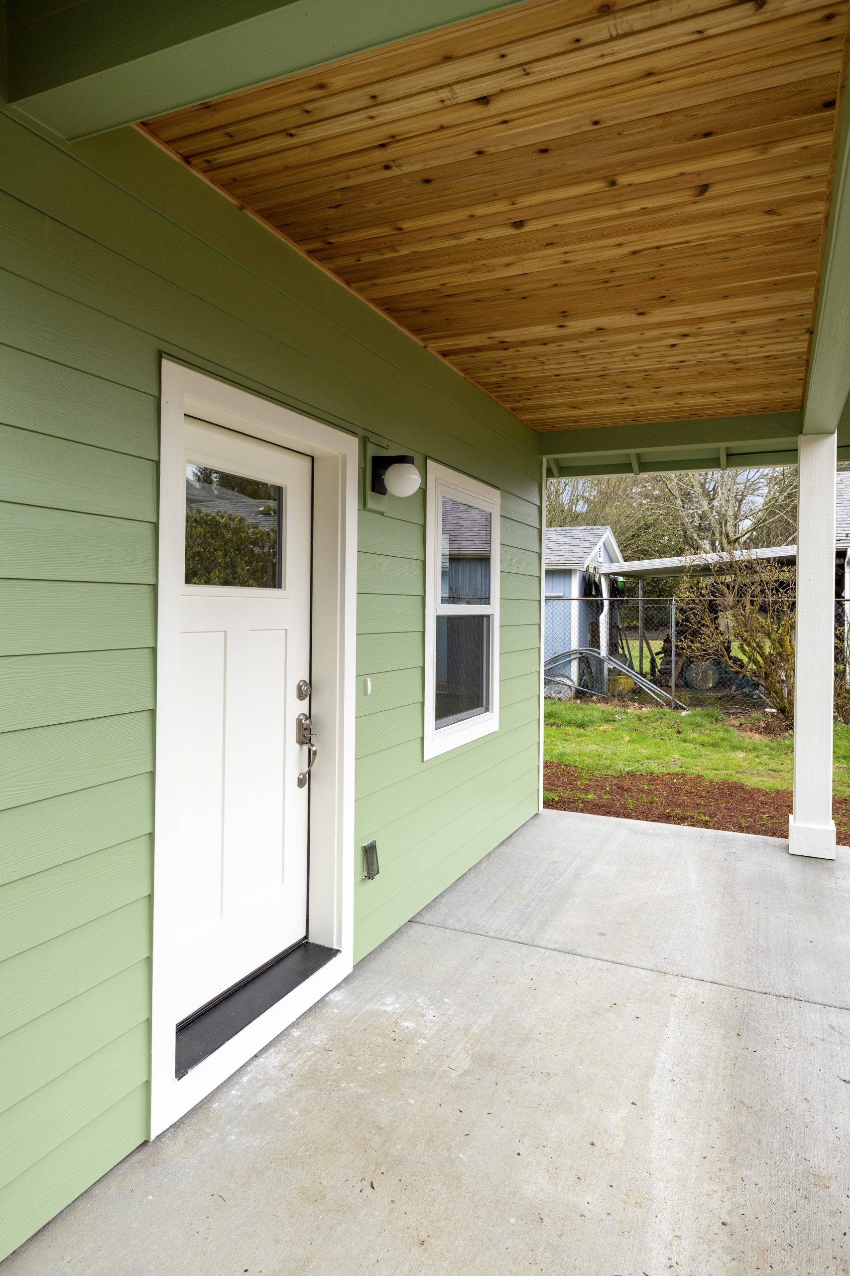 Our clients built this 800 square foot, 2-bedroom / 2-bath ADU in SE Portland with the heartfelt goal of keeping family close. Thoughtfully designed to feel like a full-sized home, it features tongue and groove covered porches at both the front and back, creating a welcoming space to relax and connect. Both bedrooms open onto the back porch through sliding doors, offering a lovely flow between indoor and outdoor living.