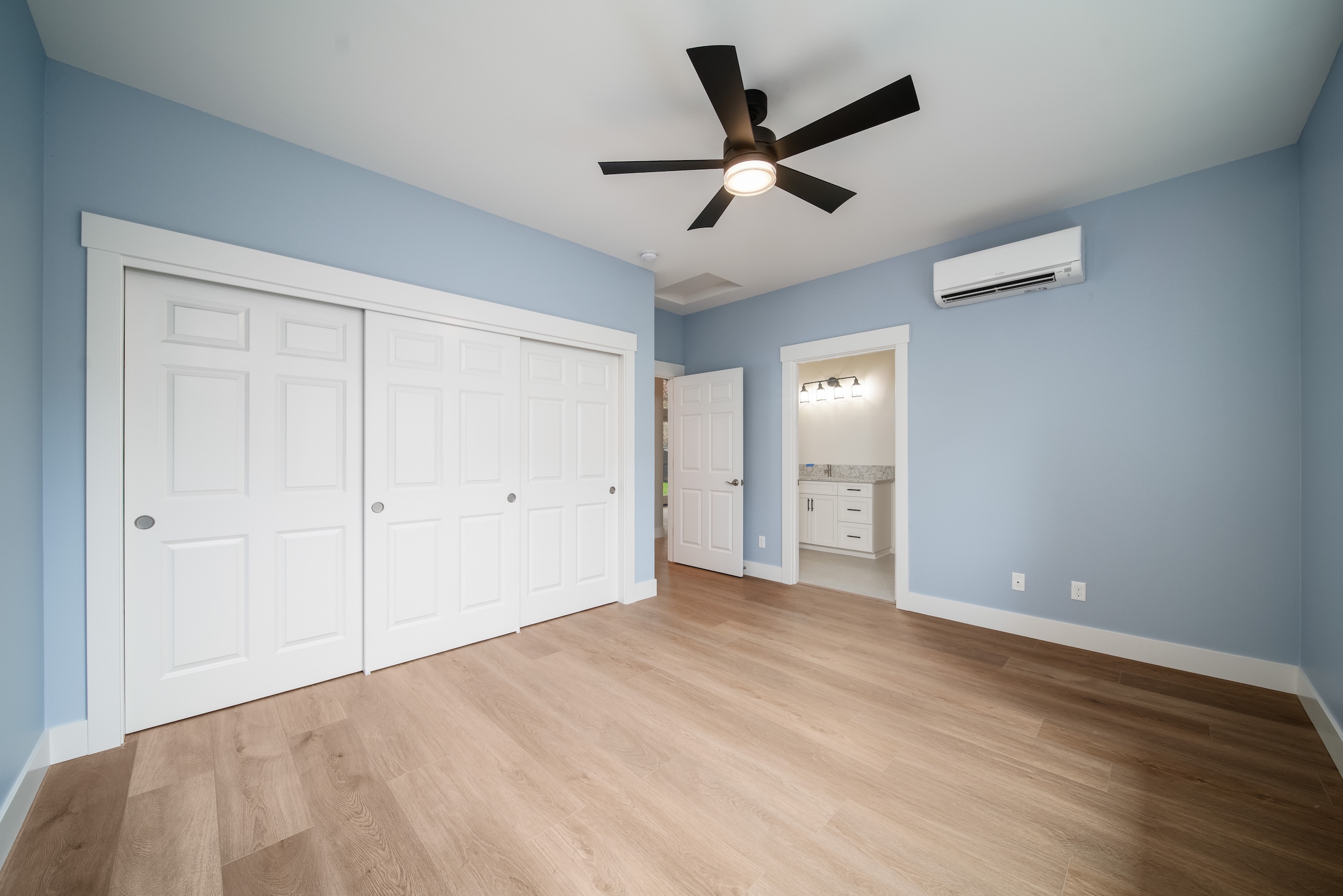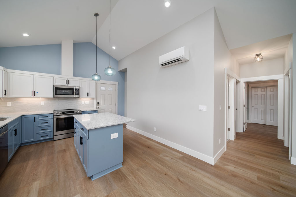 This attached, one-level ADU was constructed with Aging-in-Place in mind, providing proximity to family and grandchildren. Unique features include a gas stove and fireplace, adding warmth and comfort to the space.
