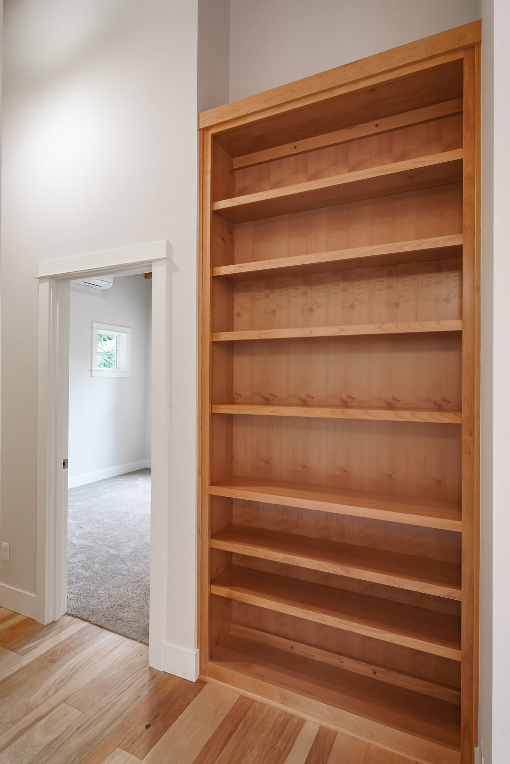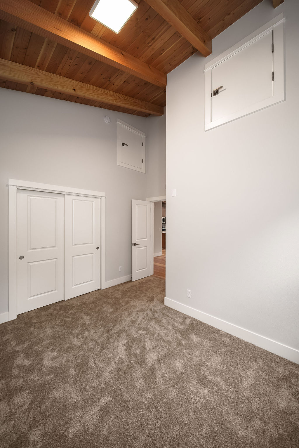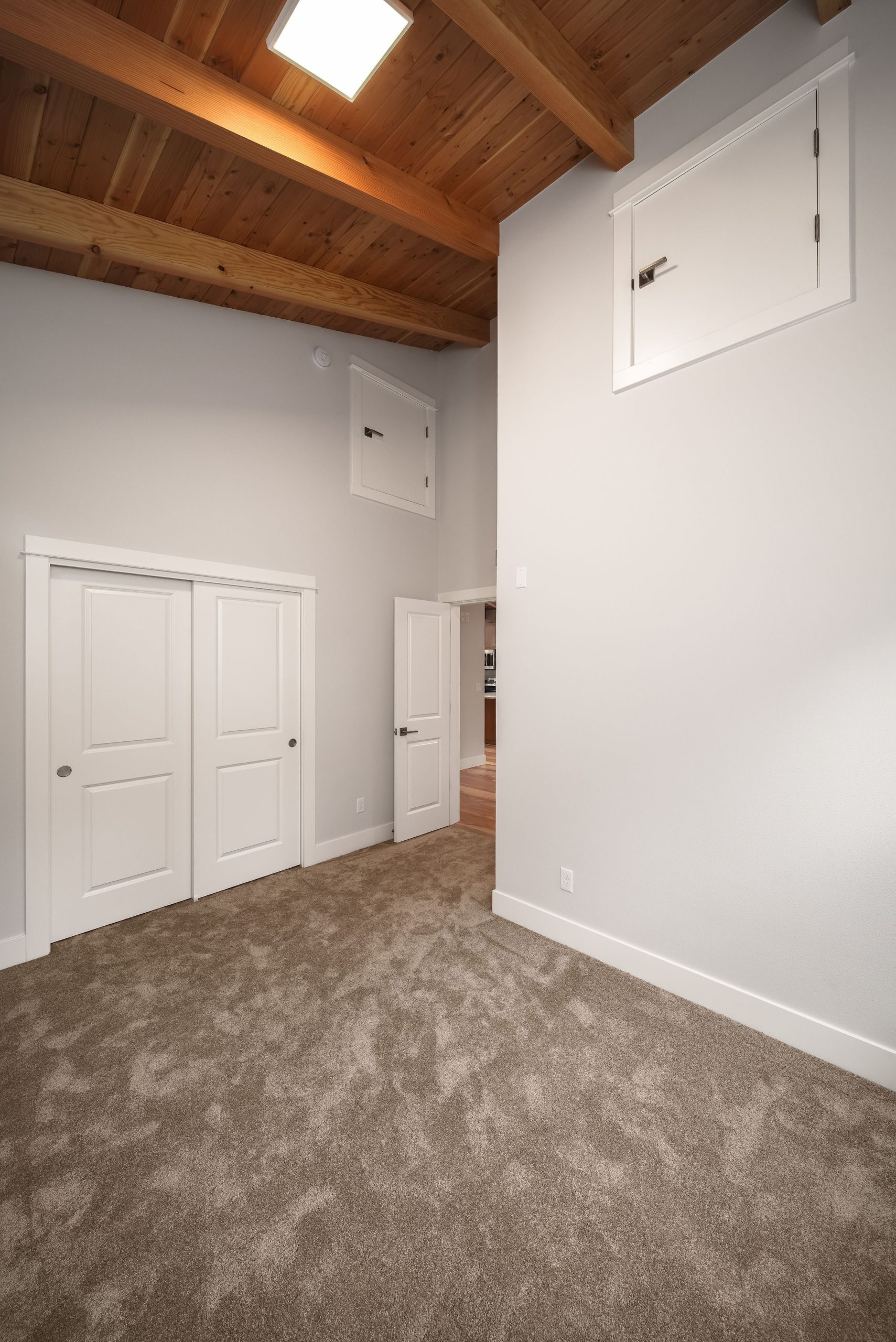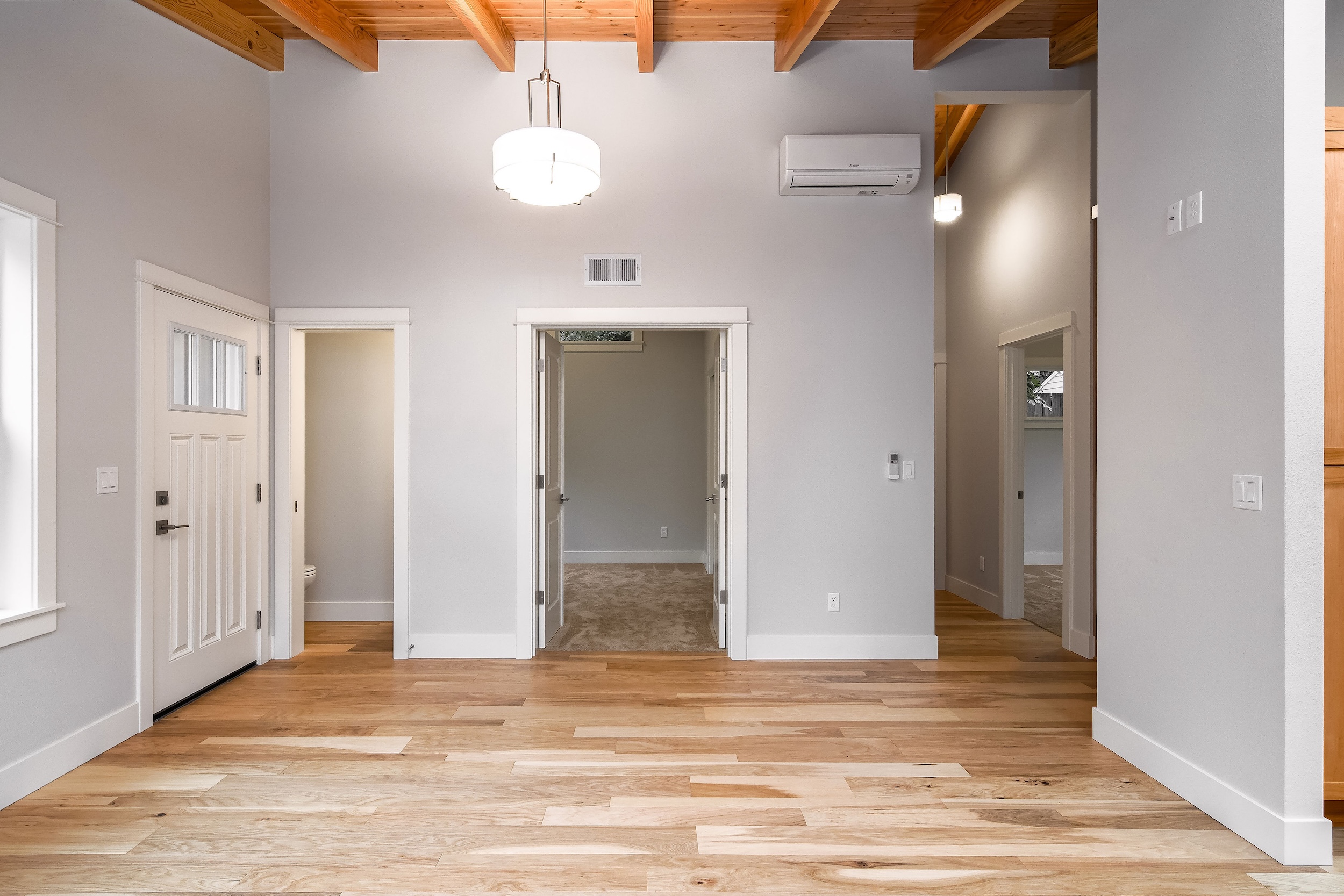 The Shaw’s modern contemporary ADU features vaulted ceilings, exposed beams, and a tongue-and-groove aesthetic. This spacious 800 square foot dwelling exudes sophistication, with its built-in cabinets and window bench enhancing both functionality and style.