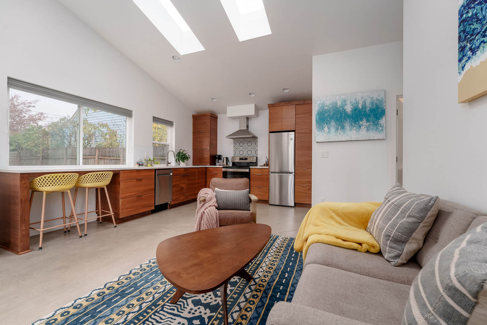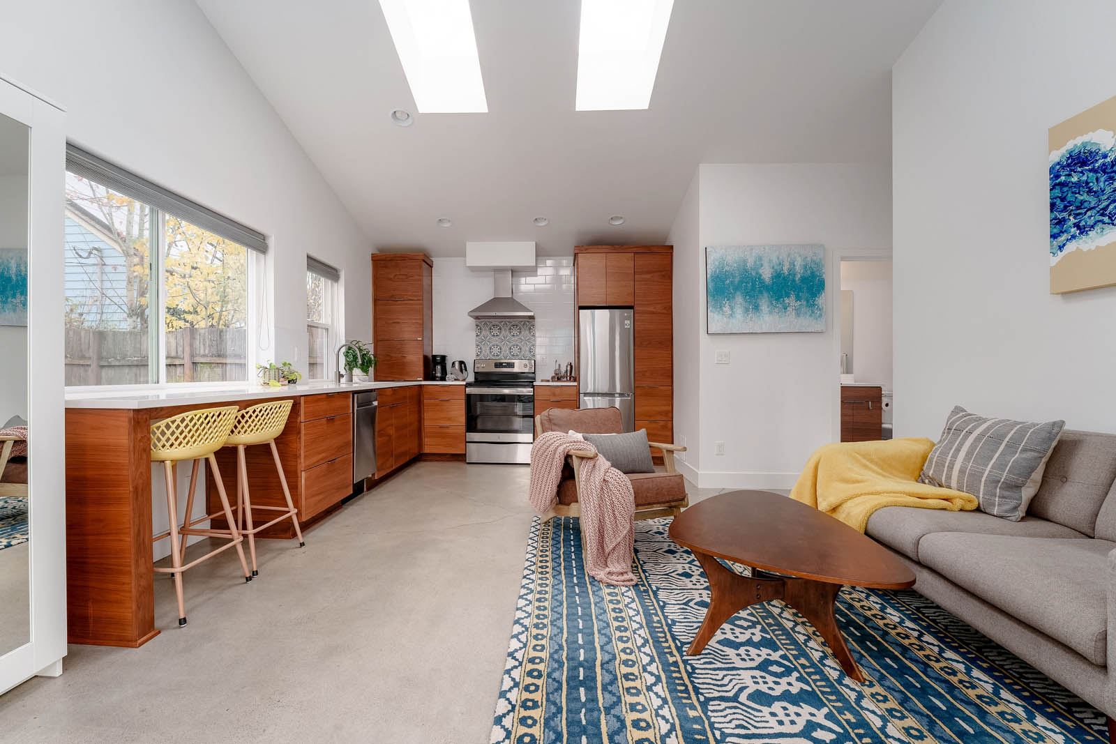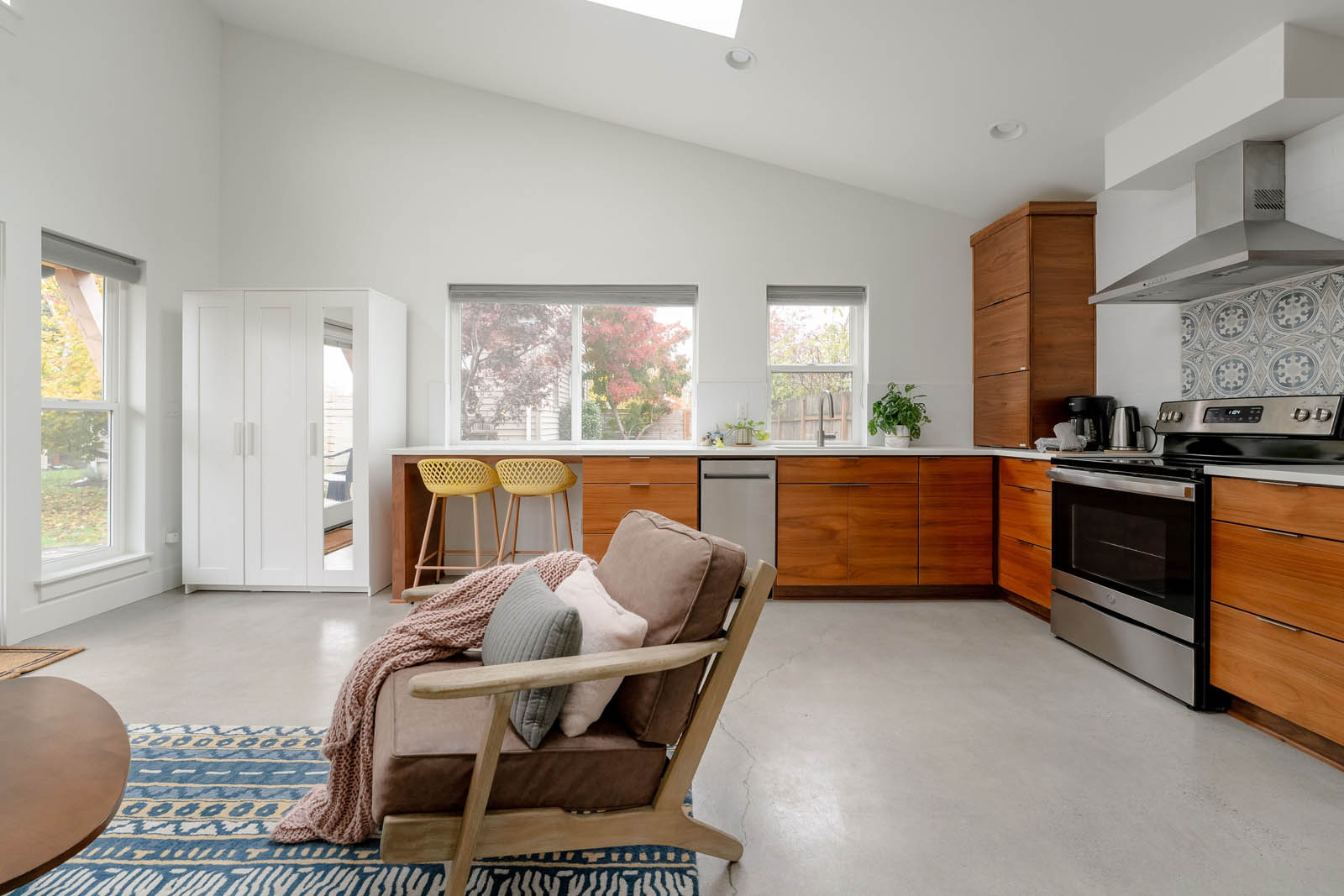 This client approached us to construct an ADU intended for use as an income property. Additionally, they frequently host neighborhood events and sought to ensure the ADU would be suitable for entertaining. Opting for a modern shed-style design, they prioritized abundant natural light through windows and skylights.