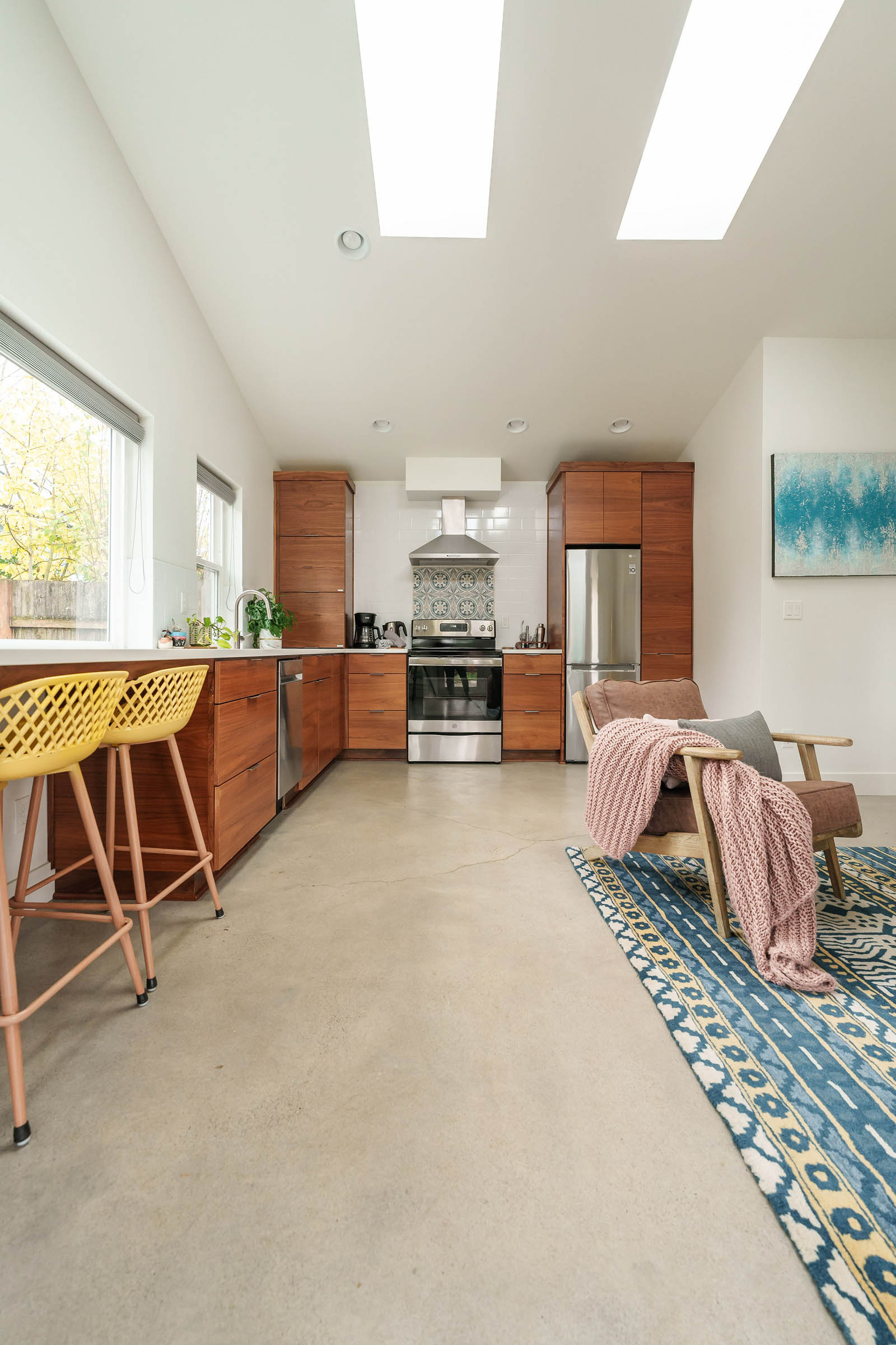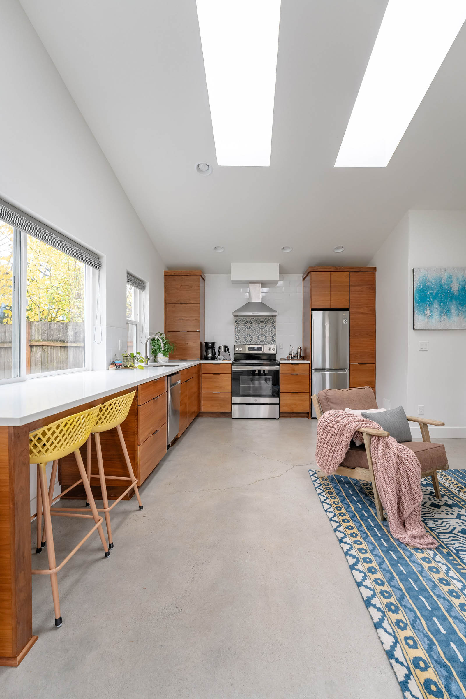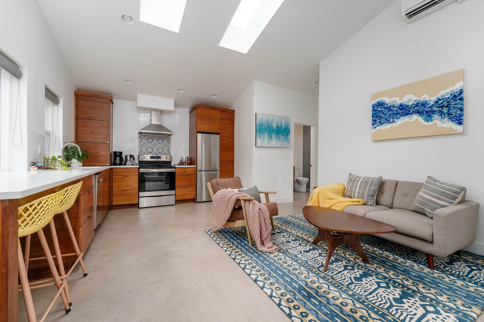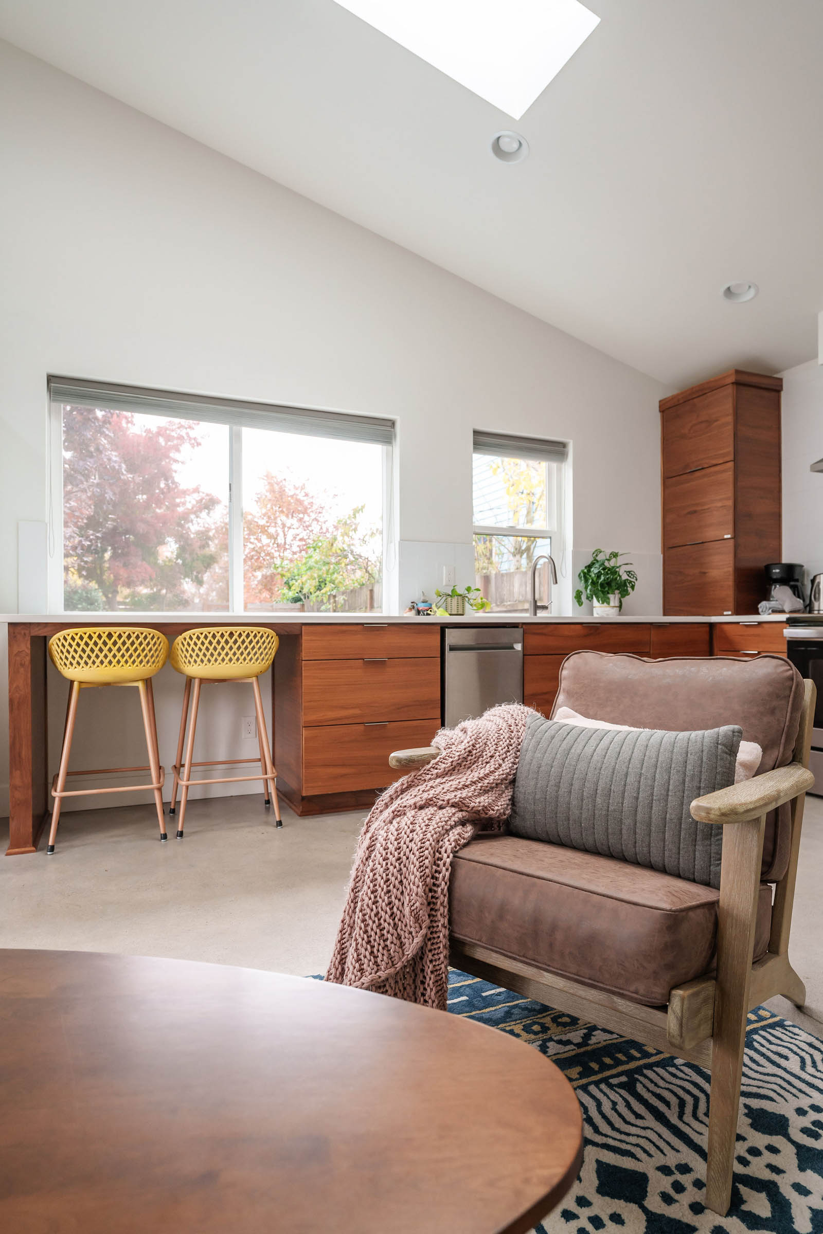 This client approached us to construct an ADU intended for use as an income property. Additionally, they frequently host neighborhood events and sought to ensure the ADU would be suitable for entertaining. Opting for a modern shed-style design, they prioritized abundant natural light through windows and skylights.