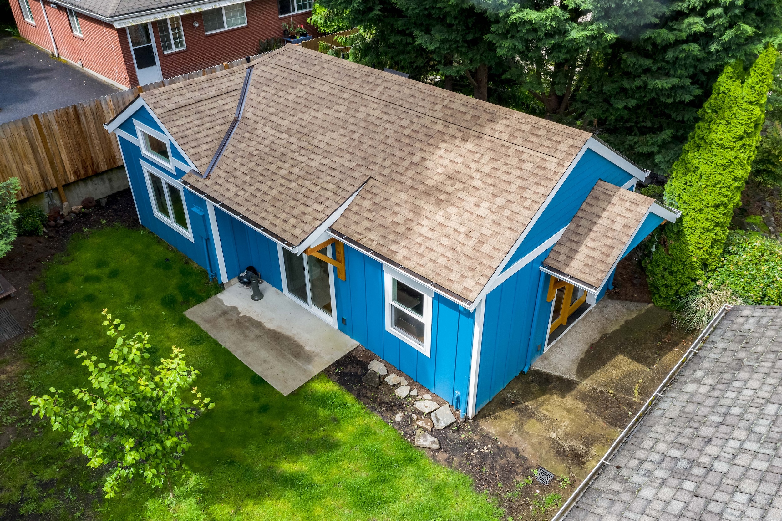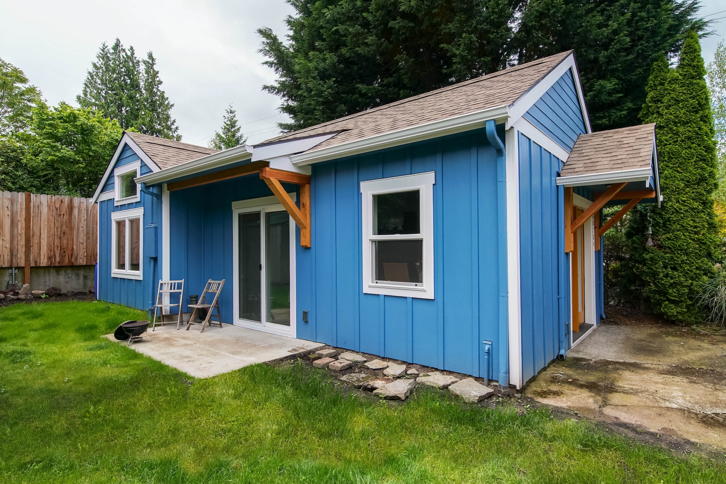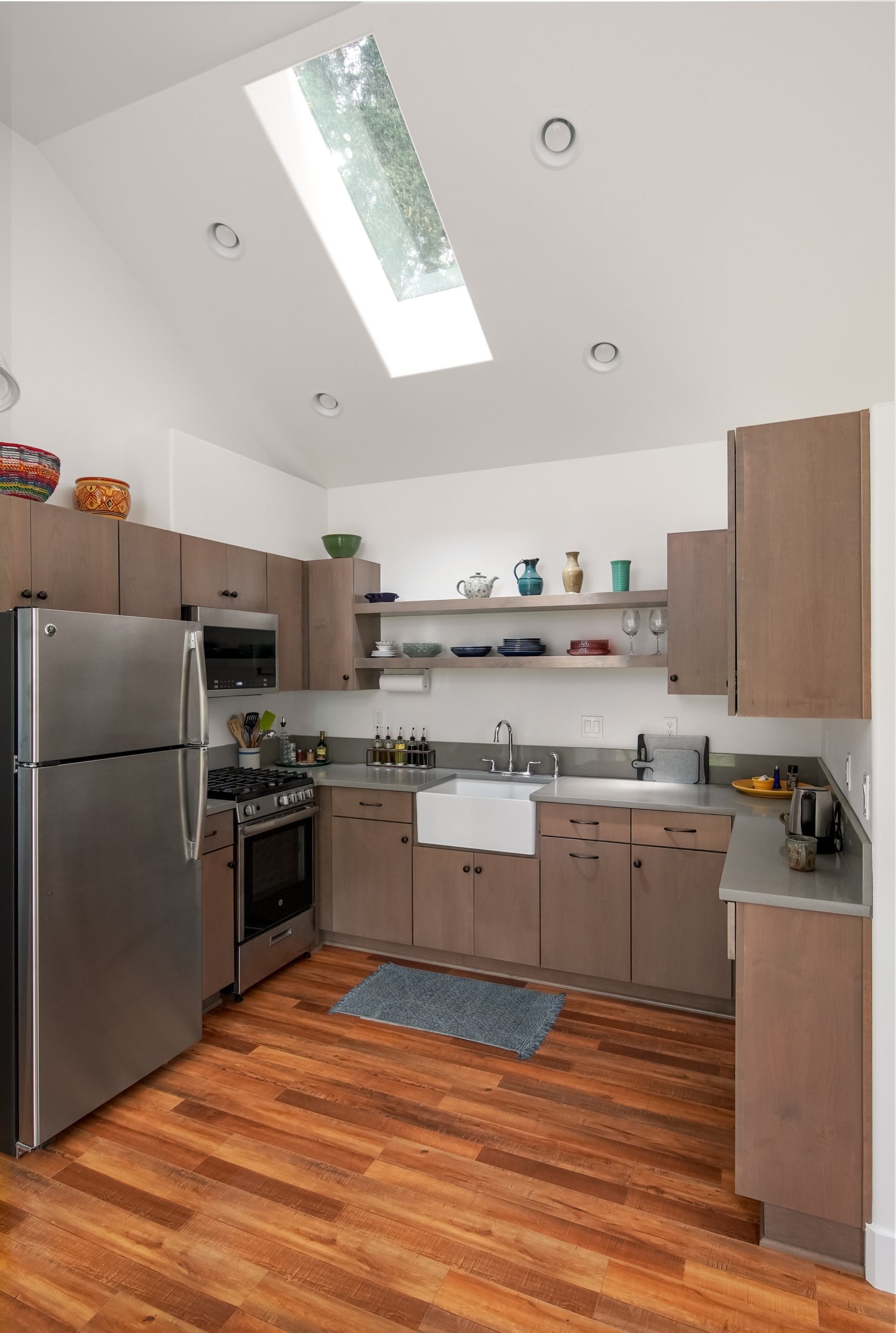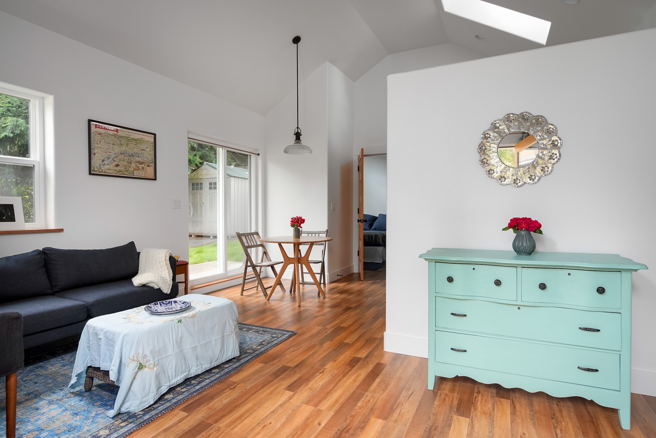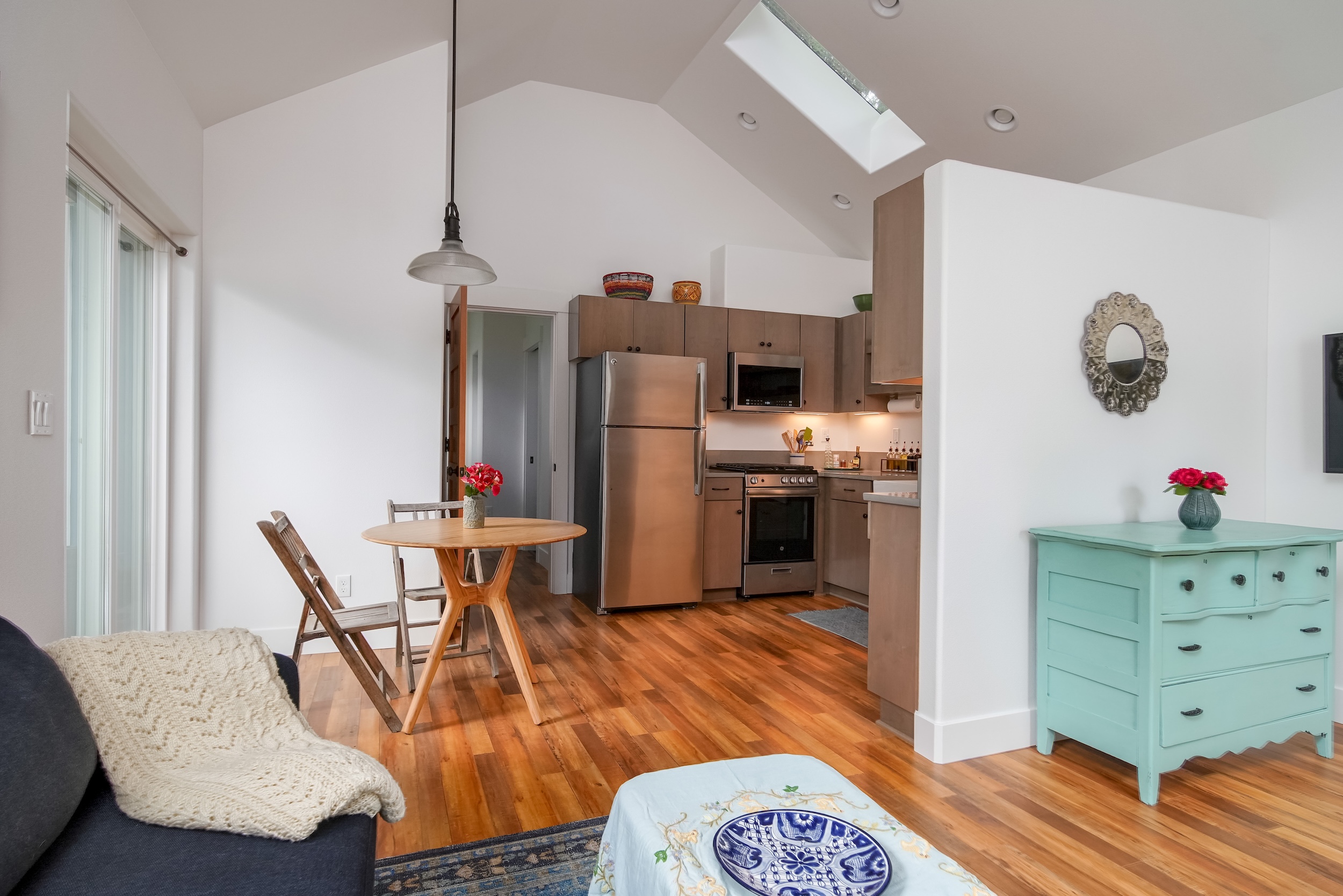Don’t be deceived. While this home may appear small from the outside, step inside the 493 square foot ADU to experience its surprisingly roomy interior. Vaulted ceilings and ample natural light create an airy atmosphere.