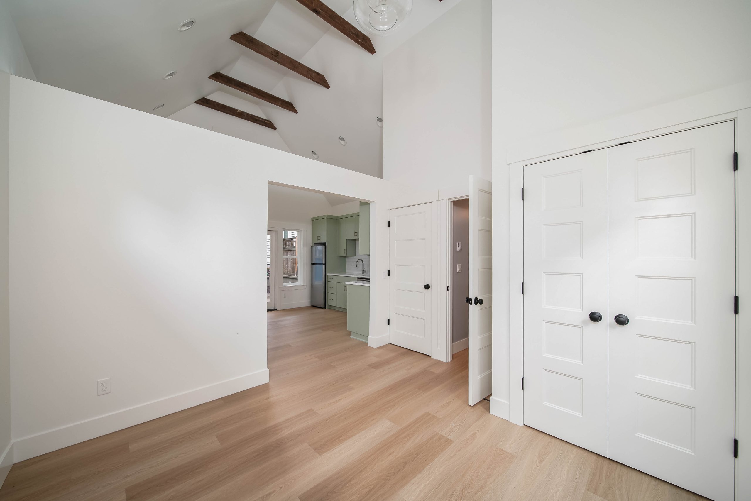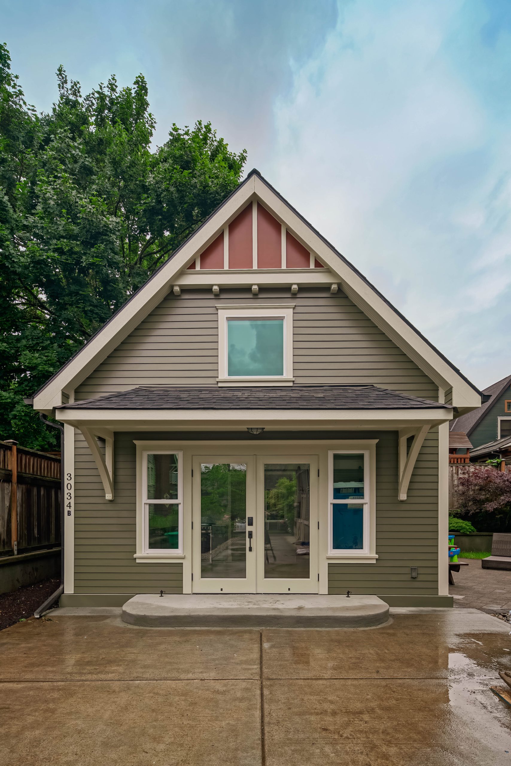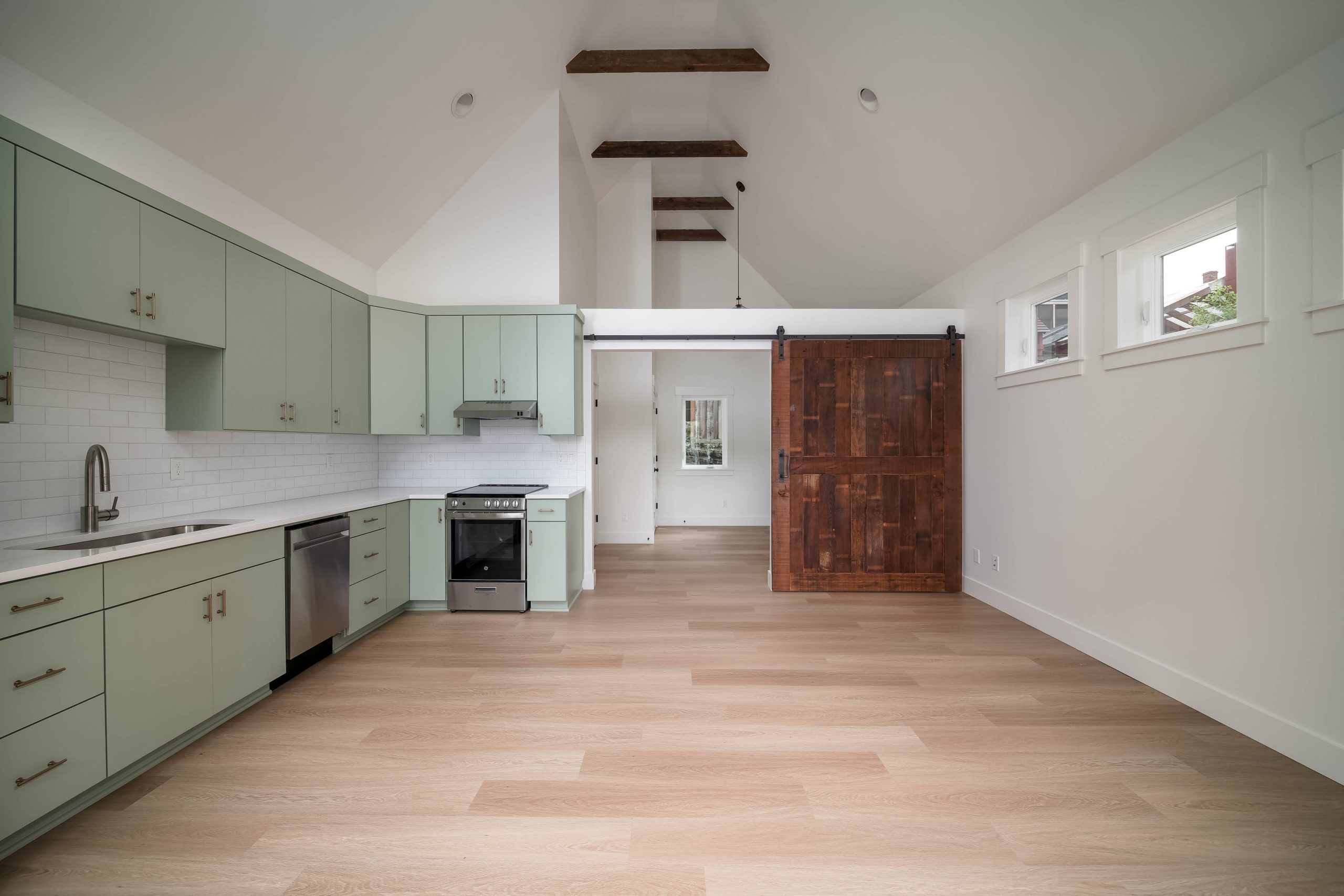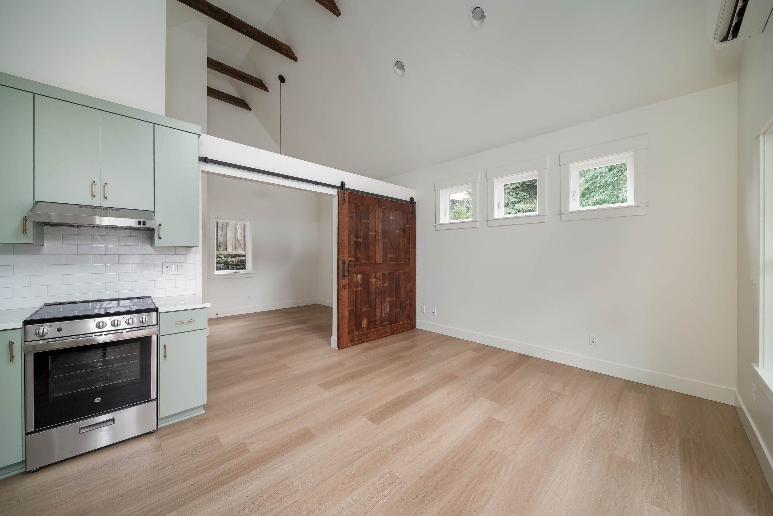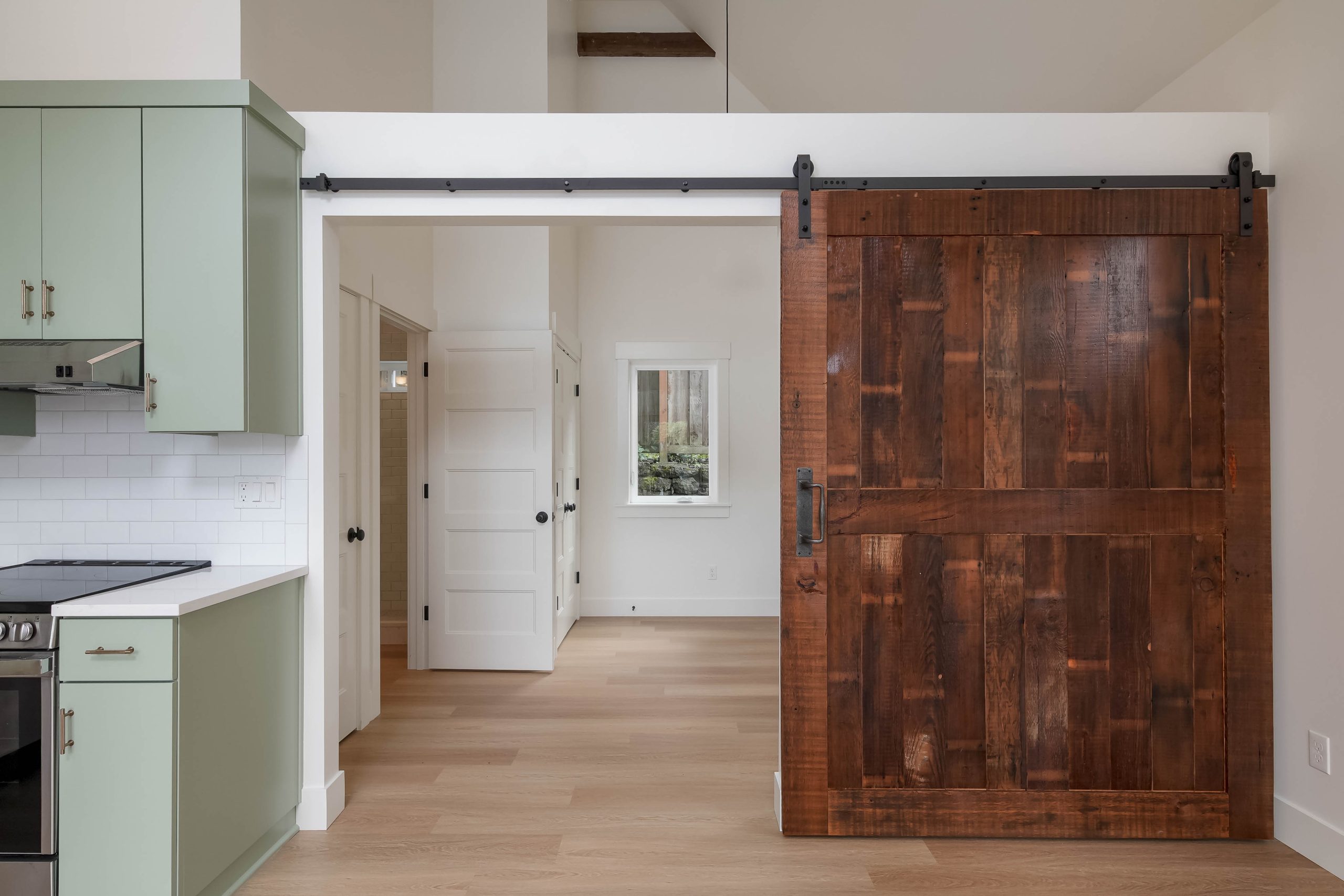 With an 18×24 footprint and 432 square feet of livable space, this detached 1-level ADU was designed with rental income in mind. Featuring faux beams, painted cabinets, and a sliding barn door, the bright interior and open concept layout create a welcoming atmosphere.