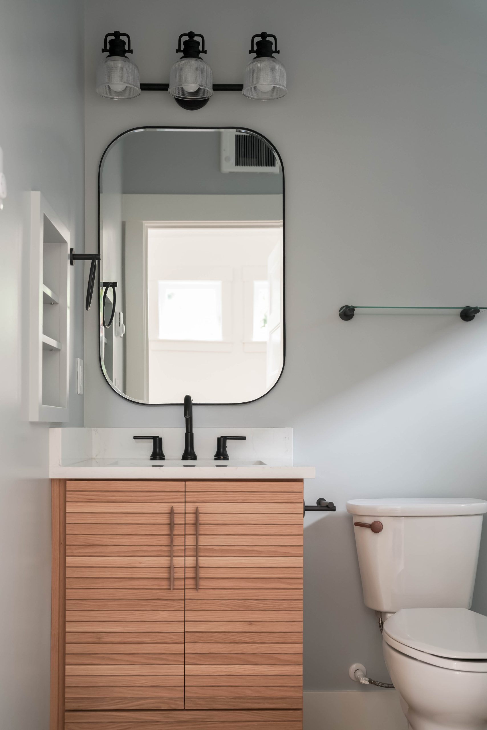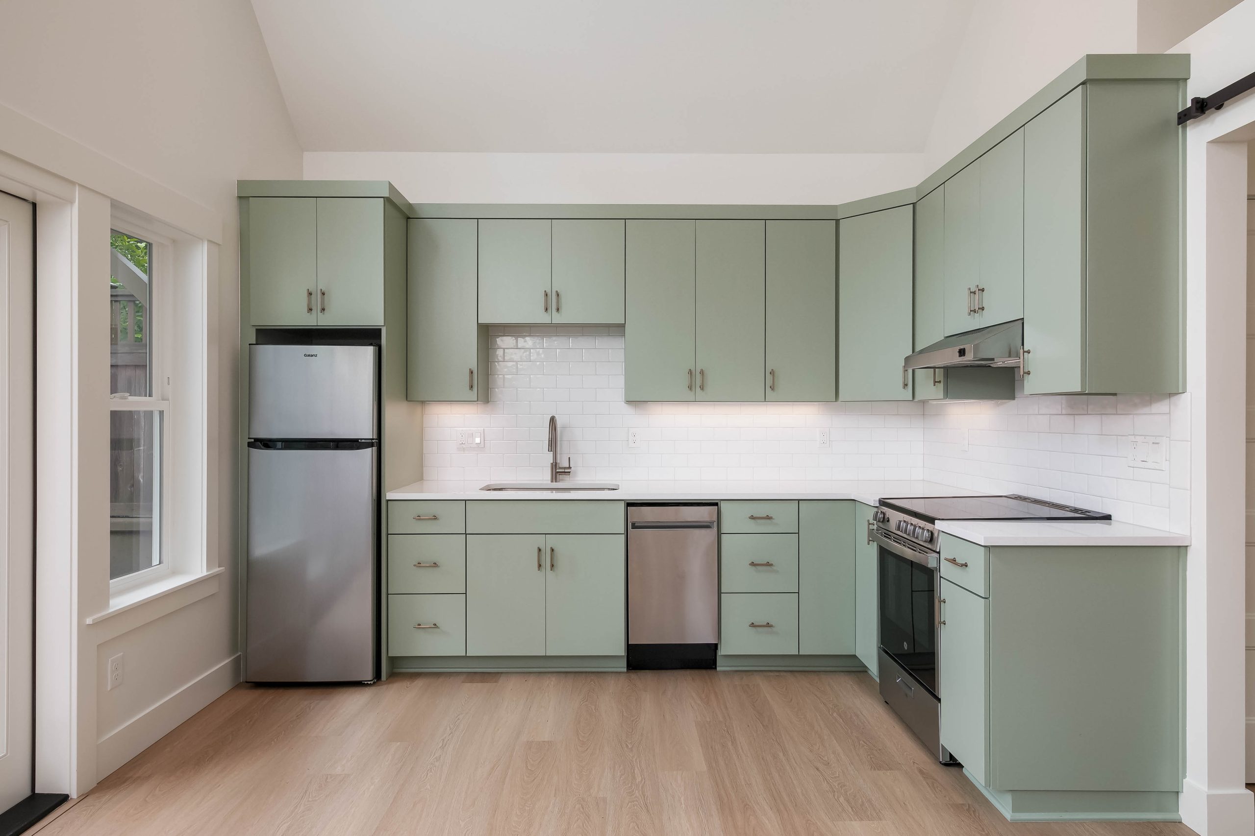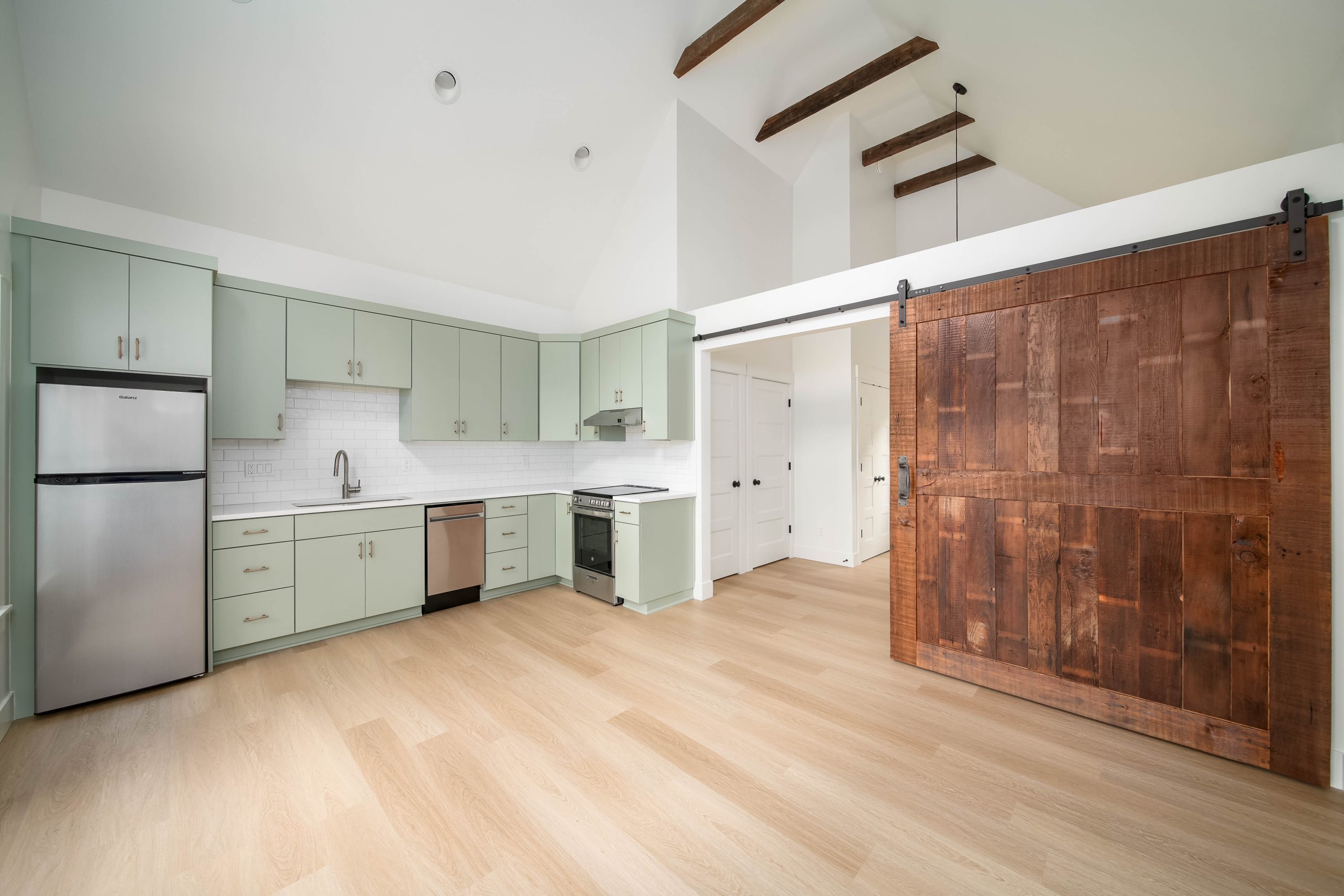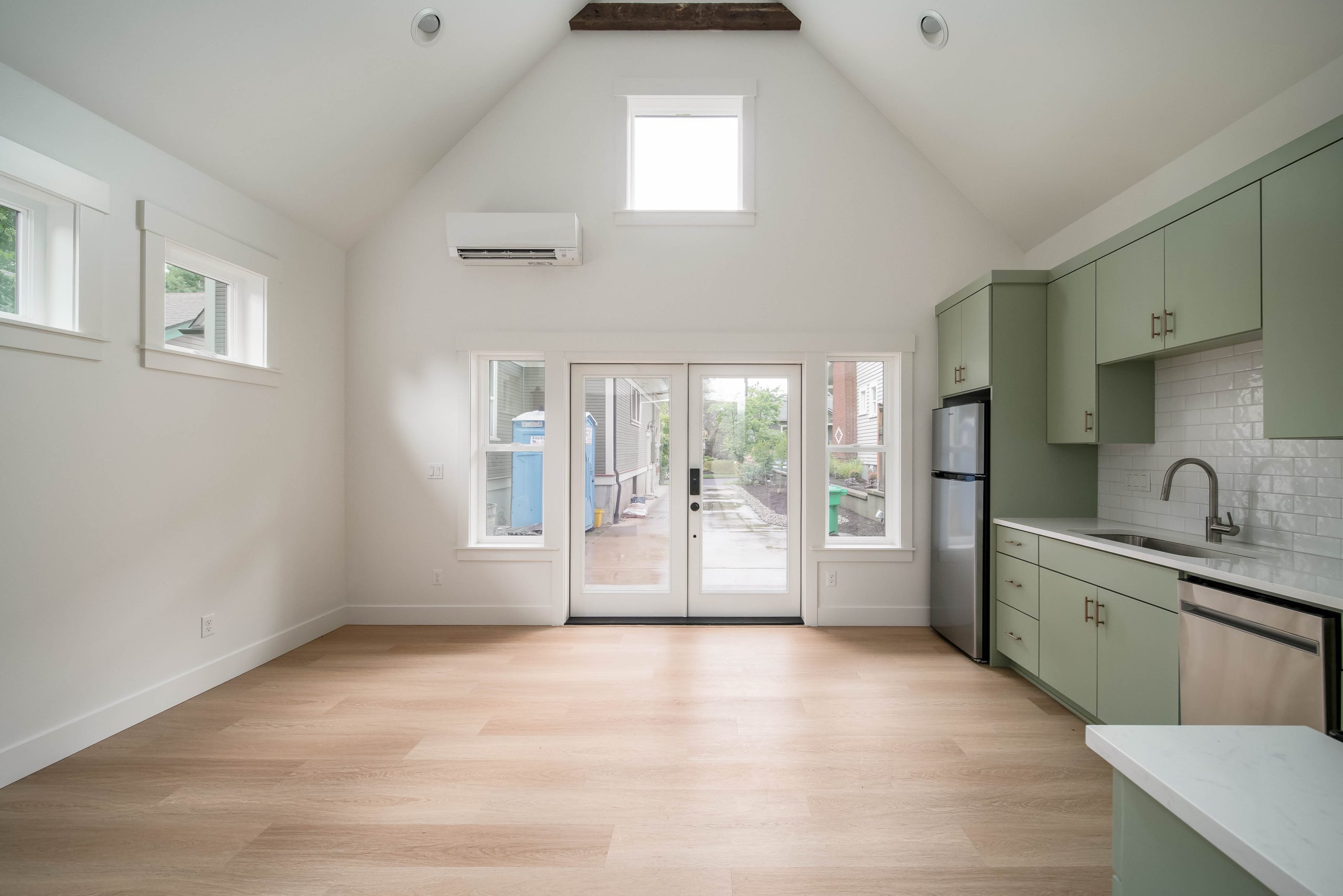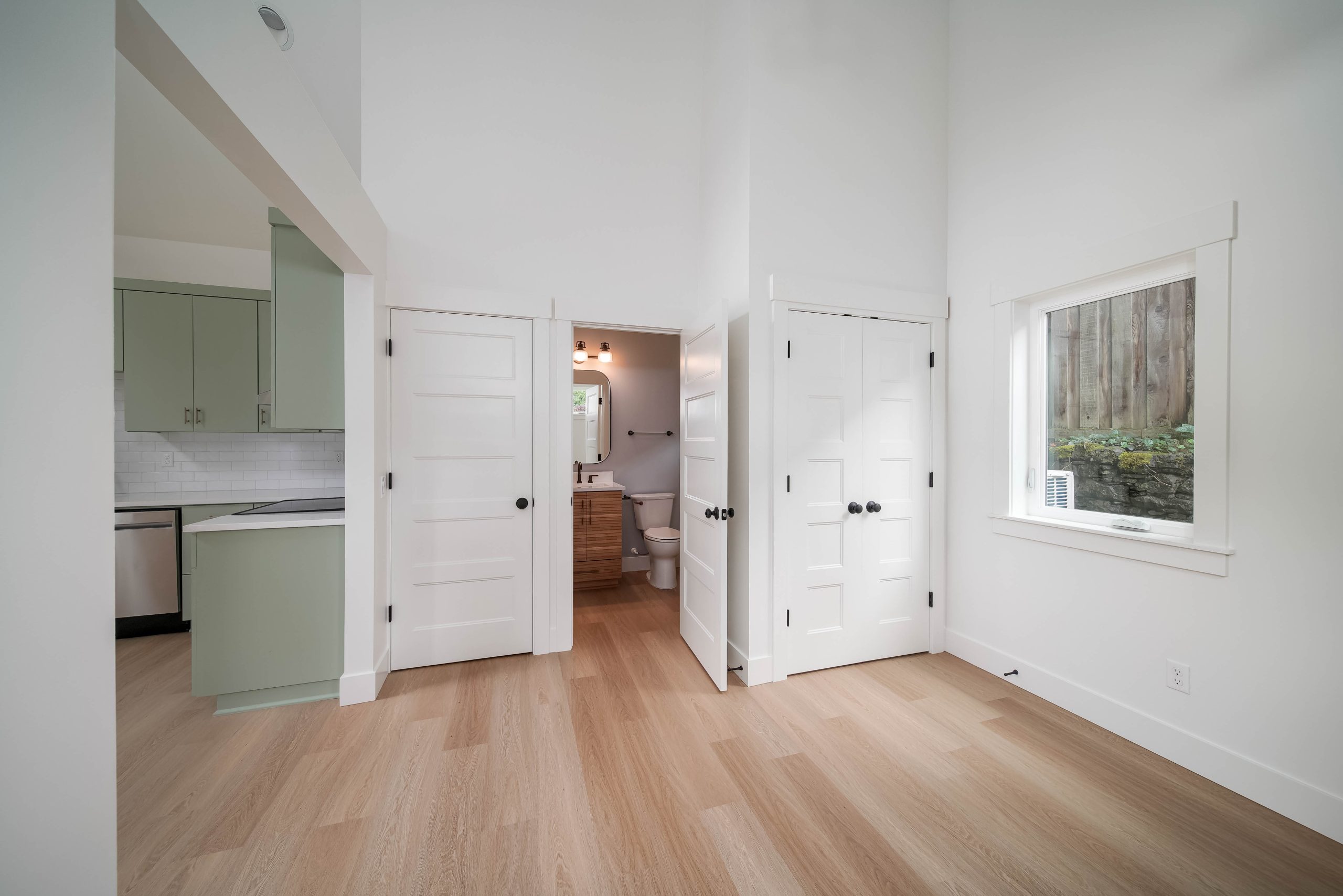 With an 18×24 footprint and 432 square feet of livable space, this detached 1-level ADU was designed with rental income in mind. Featuring faux beams, painted cabinets, and a sliding barn door, the bright interior and open concept layout create a welcoming atmosphere.