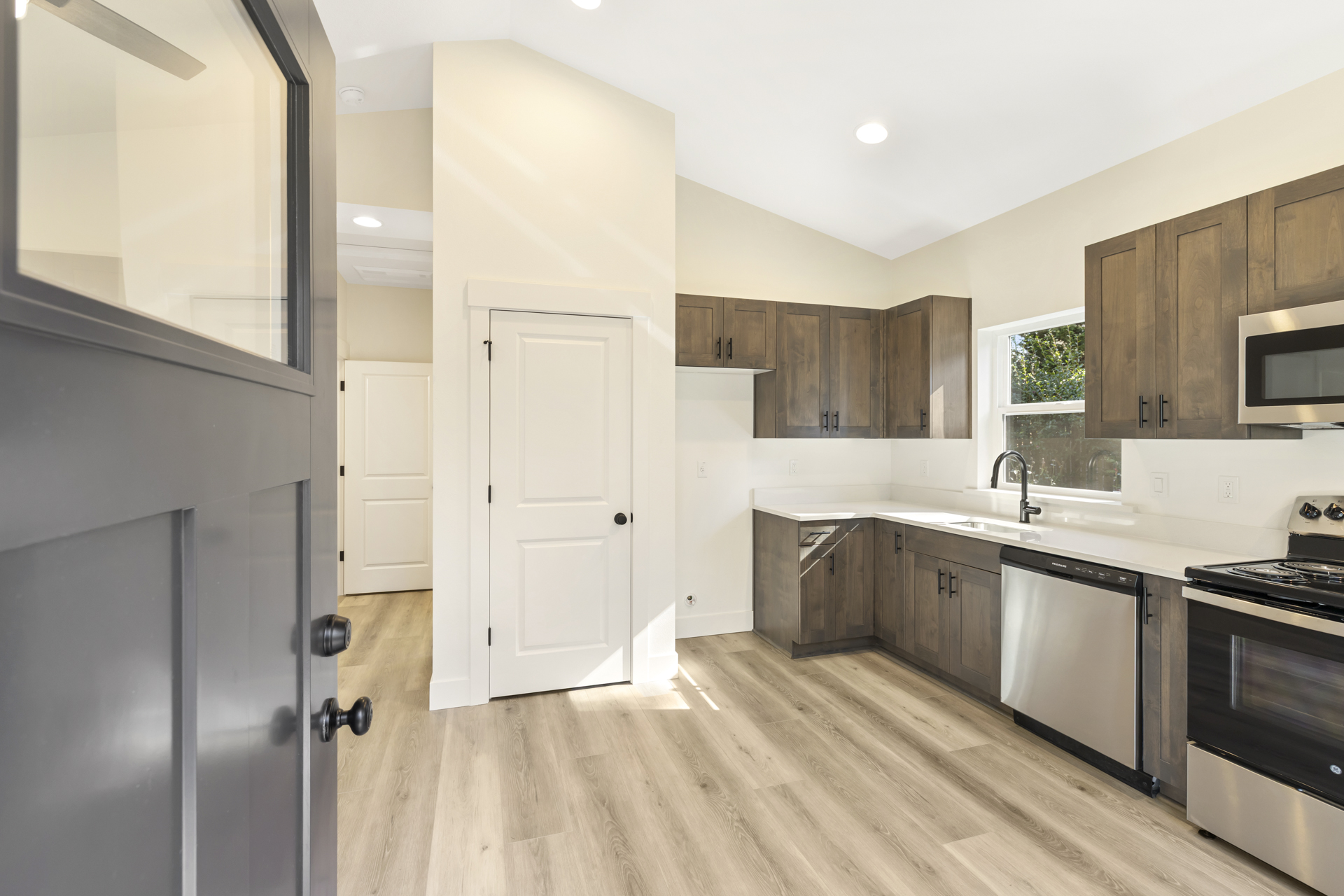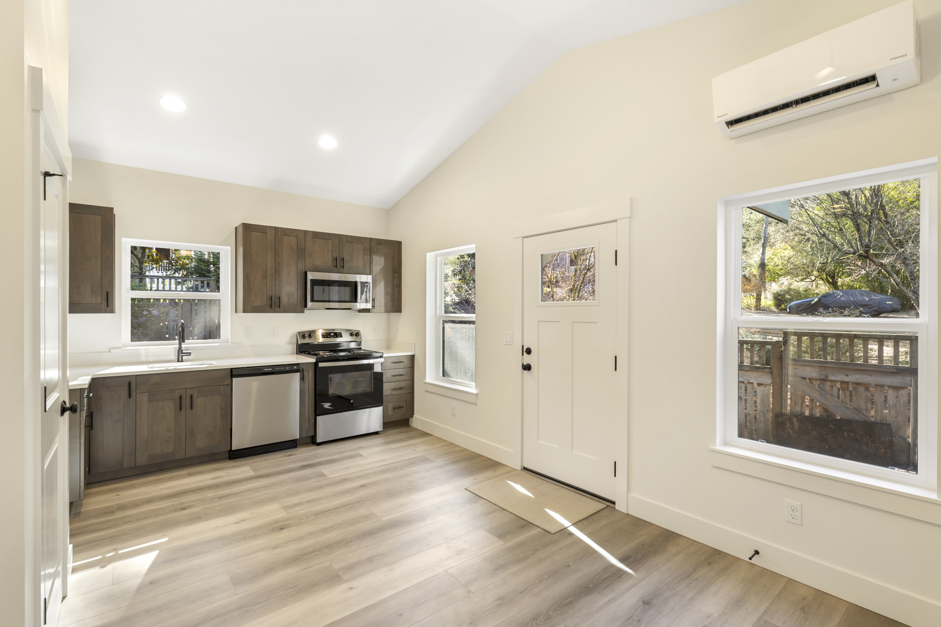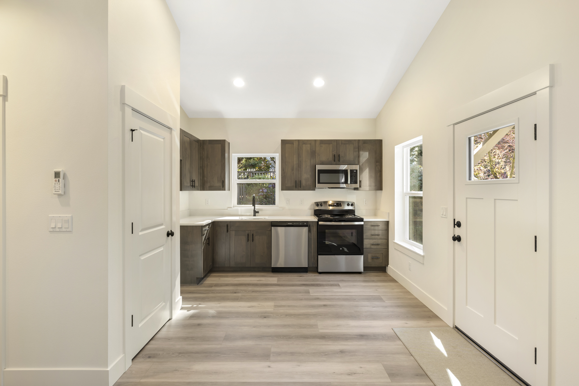 This Remington Model, detached, 480 sq. ft. ADU on a 20′ x 24′ footprint blends traditional Pacific Northwest Craftsman character with a simple single level layout. Inside, the vaulted ceiling creates an open and comfortable feel, while giving the home a sense of spaciousness.