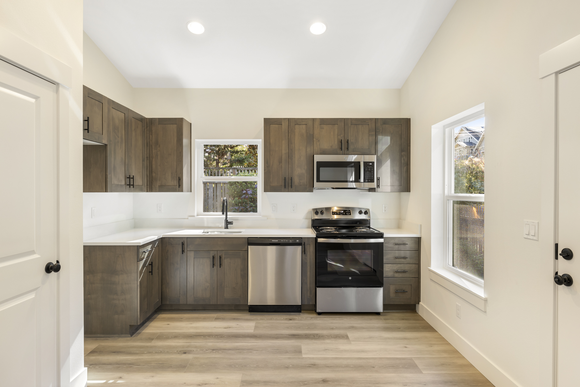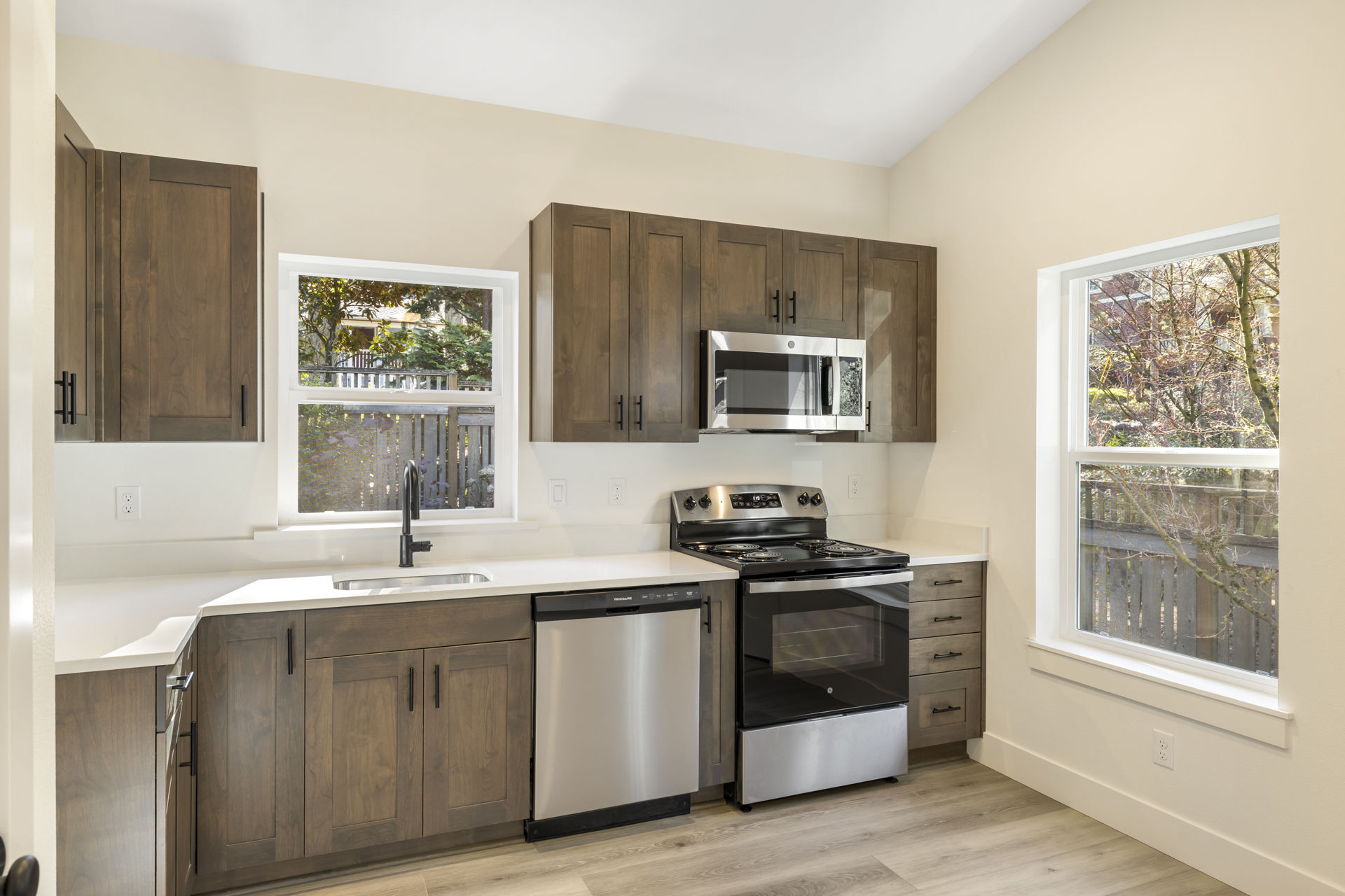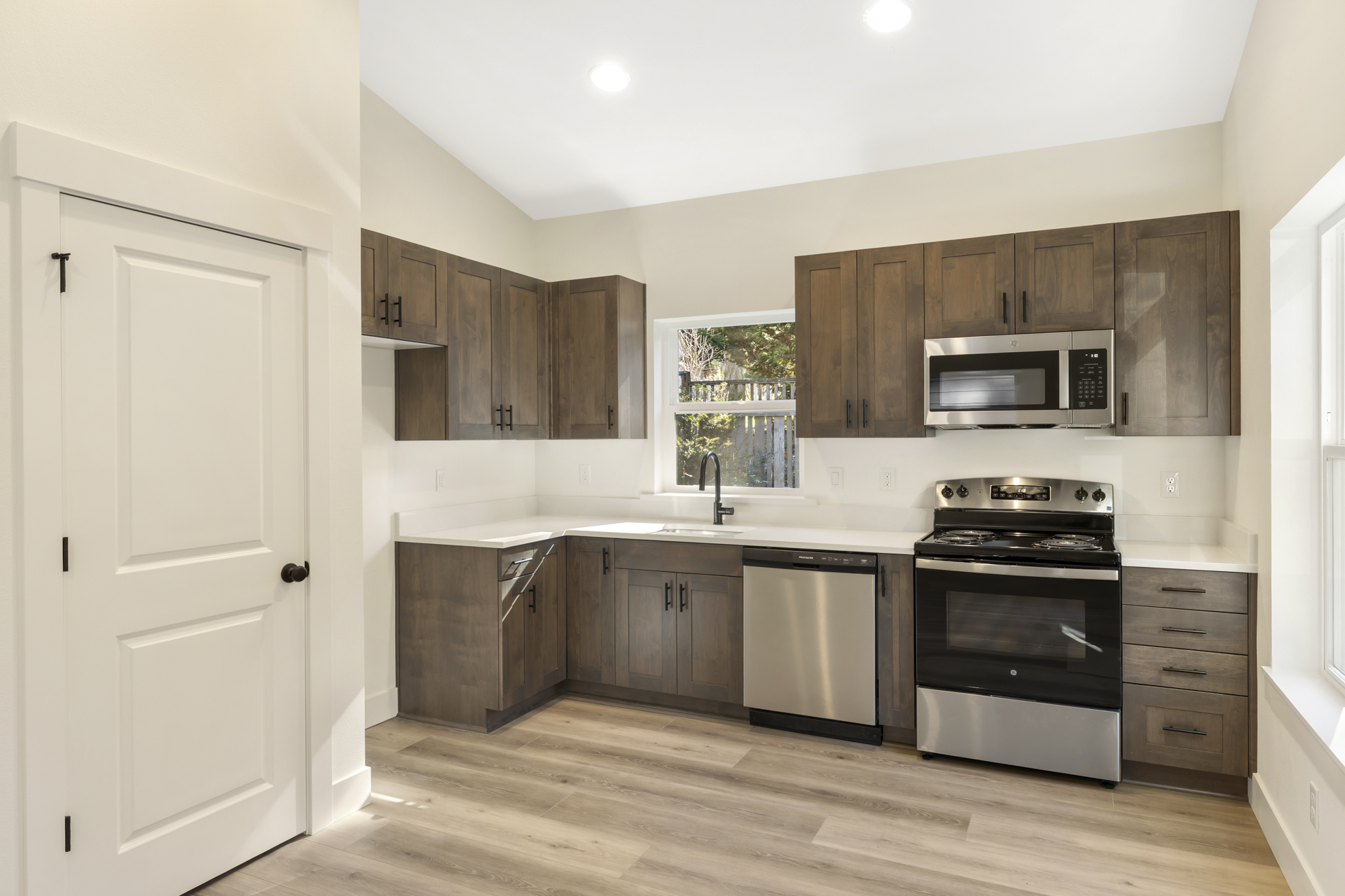This Remington Model, detached, 480 sq. ft. ADU on a 20′ x 24′ footprint blends traditional Pacific Northwest Craftsman character with a simple single level layout. Inside, the vaulted ceiling creates an open and comfortable feel, while giving the home a sense of spaciousness.