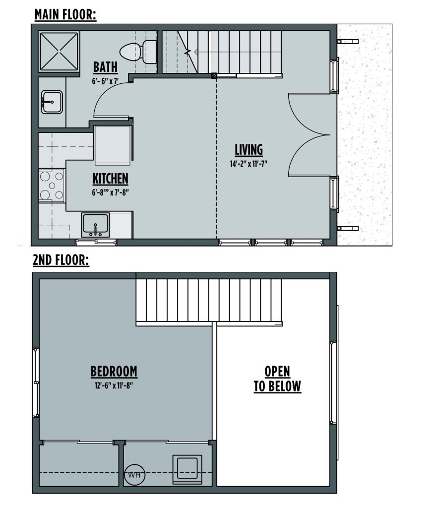 The Willow lives much larger than its 16' x 22' footprint, thanks to its two-level design, soaring 18-foot vaulted ceilings, and an abundance of thoughtfully placed windows. Its 460 sq. ft. floorplan features a main floor with a full-height, open-concept living area with flexible space for both a lounge setup and a dining nook. Upstairs, a spacious loft overlooks the living room below while still offering privacy for a bedroom, home office, or bonus space. The Willow’s lofty design is grounded by the warmth of its Pacific Northwest-inspired craftsmanship. Designed for those who value spaciousness, style, and smart design, this model offers elevated living in a compact footprint.